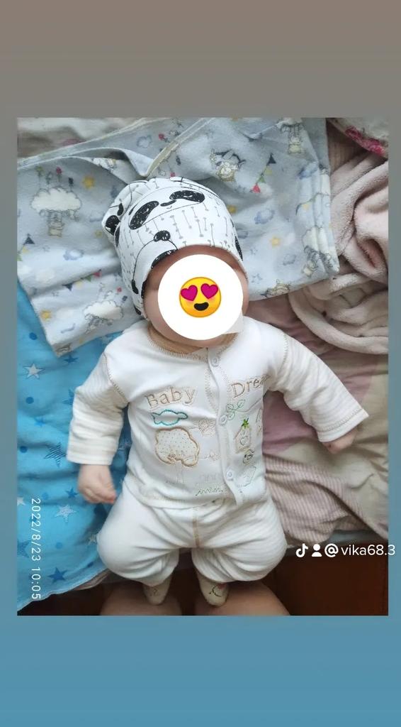Es ist sehr klein, die Größe beträgt 0-3 Jahre, aber für ein Kind im Alter von 1 und 3 Monaten ist es klein, der Kopfumfang betrug 47 cm.
