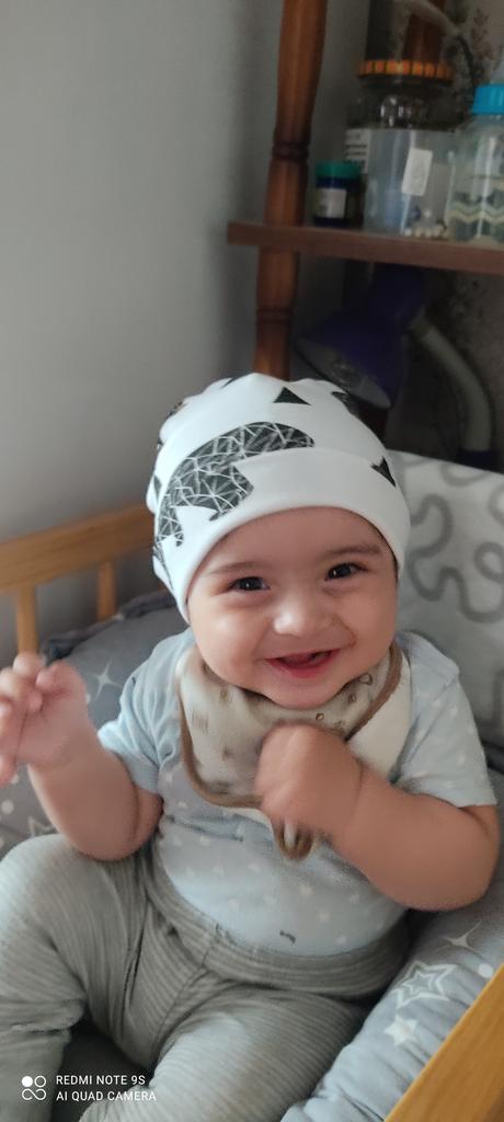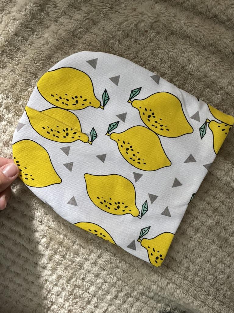 Für 6 Monate (Kopfgröße 42) ist es zu groß, aber wenn man es anpasst, sieht es grundsätzlich normal aus. Ich wollte nur Zitronen)