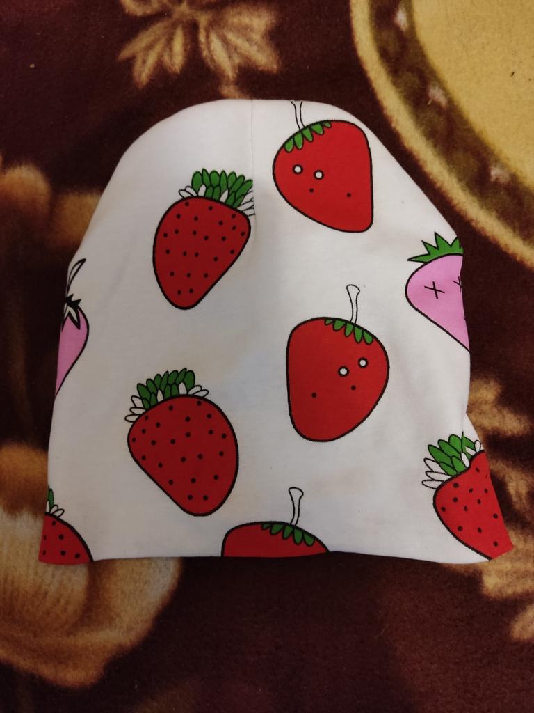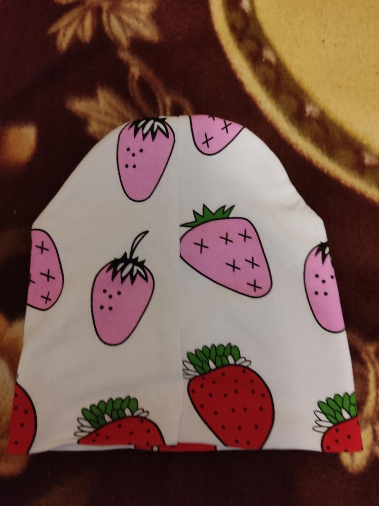 Schöner Hut, wir sind ein Jahr alt, genau richtig, leuchtende Erdbeeren, genau wie auf dem Bild. Der Stoff ist dünn und eignet sich für kühle Sommer und sogar warme Herbste. Ich empfehle den Kauf
