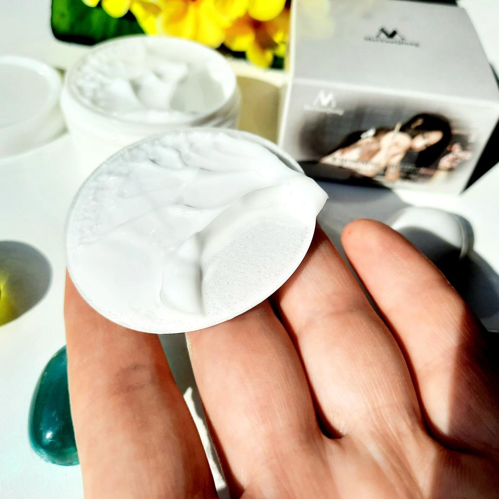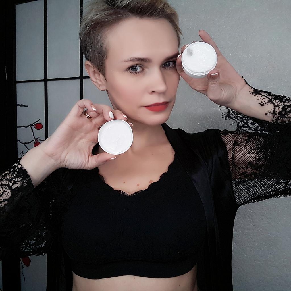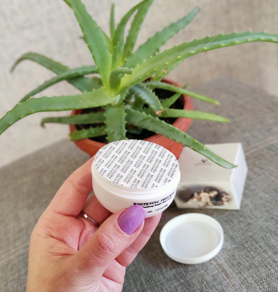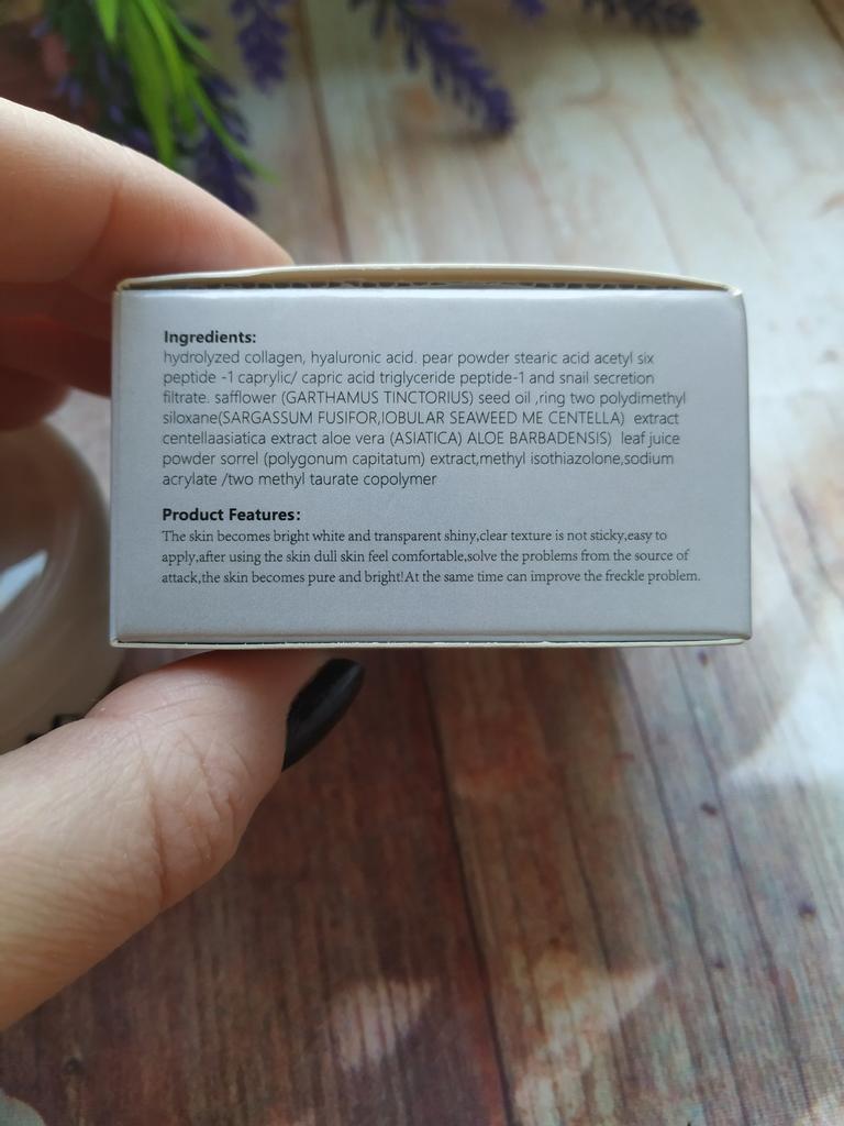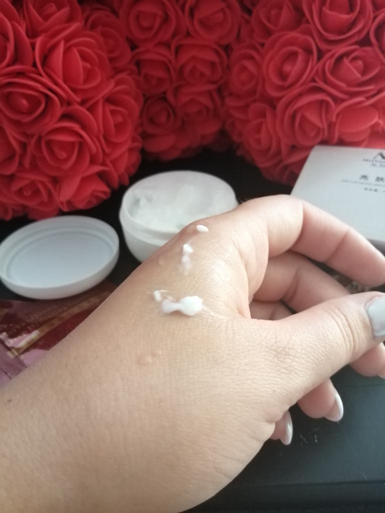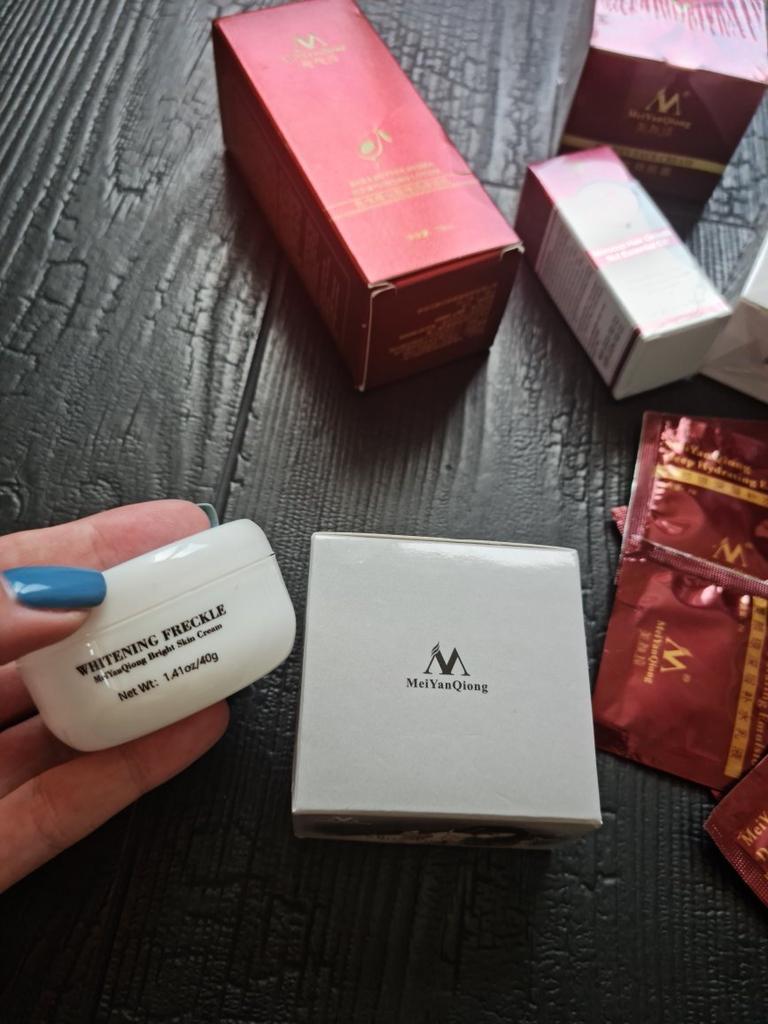 Die Creme ist klein (auf dem Foto im Vergleich zum Sampler zu sehen), aber sie hält lange, ich mochte das Aroma, auch die Konsistenz, die Haut ist mit Feuchtigkeit versorgt und weich, und es gibt keinen öligen Glanz, was erfreulich ist)) Zum Bleaching kann ich noch nichts sagen, da ich erst damit angefangen habe. Ich wünsche allen eine erfolgreiche Wahl 😊