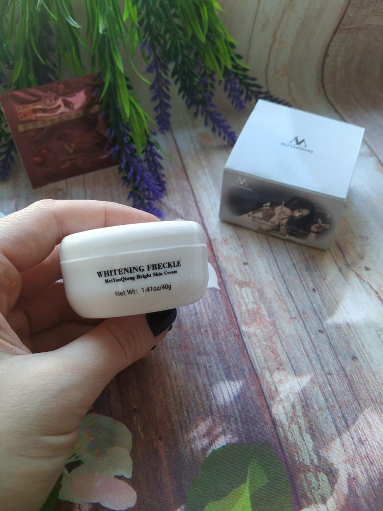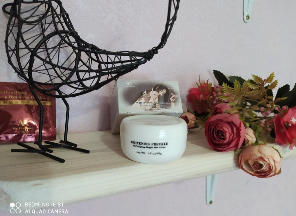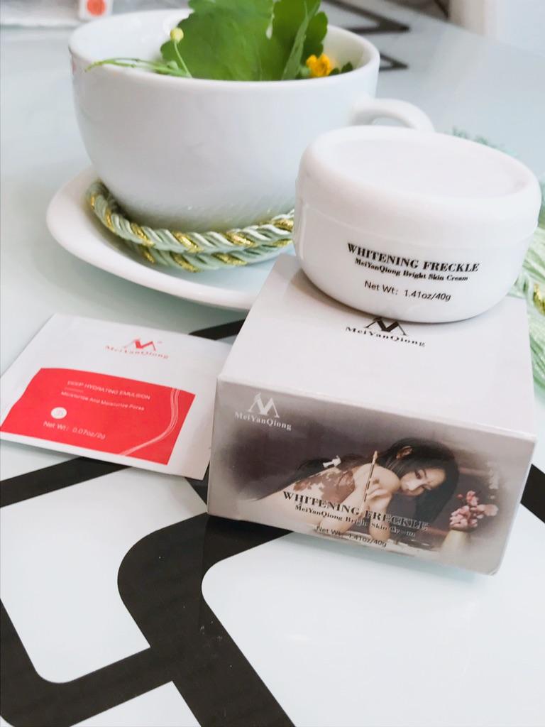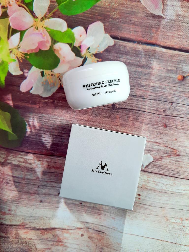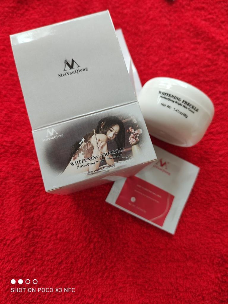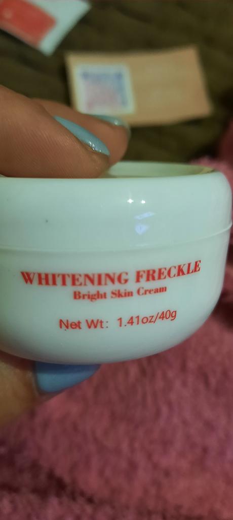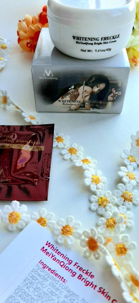 Sommersprossencreme Ich habe wenige Sommersprossen, die besonders sichtbar sind, wenn mein Gesicht im Sommer mehr der Sonne ausgesetzt ist. Aber ich habe diese Creme gegen Akneflecken bestellt. Sie wissen, dass Akne schnell entsteht und verschwindet, aber sie hinterlässt monatelang einen roten Fleck im Gesicht, wenn sie nicht behandelt wird. Diese Creme verspricht, dass sie wirksam ist, um Akneflecken und Sommersprossen zu entfernen. Ich benutze so viele Produkte dieser Marke MeiYanQoing. Und ich bin so glücklich mit ihren anderen Produkten, deshalb wollte ich es versuchen. Ich habe das Gefühl, dass meine Haut gerade im besten Zustand ist. Ich habe noch ein paar rote Flecken. Kürzlich wurde berichtet, dass das Tragen von Masken als Schutz vor Corona selbst bei älteren Menschen Akne verursacht. Da ich meine Haut mit diesen Produkten pflege, habe ich ab und zu nur wenige. Normalerweise hatte ich vor Corona (Maske tragen) in einer Woche nur wegen Make-up viel zu tun. Und ja, ich schminke mich immer noch im ganzen Gesicht, obwohl ich eine Maske trage... Weil wir Kaffee- und Mittagspausen auf der Arbeit haben, wo ich die Maske abgenommen habe 😅. Ich finde, diese Creme riecht nach Rose, was für mich ein sehr angenehmer Geruch ist. Die Textur ist moderat. Es wird leicht von meiner Haut aufgenommen. Es reicht aus, eine kleine Menge auf meine Finger zu nehmen und direkt auf die roten Akneflecken aufzutragen. Der Behälter sieht vielleicht etwas klein aus, enthält aber 40 g Creme, was im Allgemeinen die gleiche Menge aller Gesichtscremes ist. Ich weiß, dass meine Rezensionen so lang sind. Und ich bin mir nicht sicher, wie viele Leute das lesen. Wenn du bis zum Ende gelesen hast, schreibe "Banane" als Kommentar 😝. Lass uns hier eine soziale Nachricht hinterlassen 😏: Liebe alle, sei kreativ und positiv, bleib sicher, wir sehen uns, byeeeeeeeeeeeeee