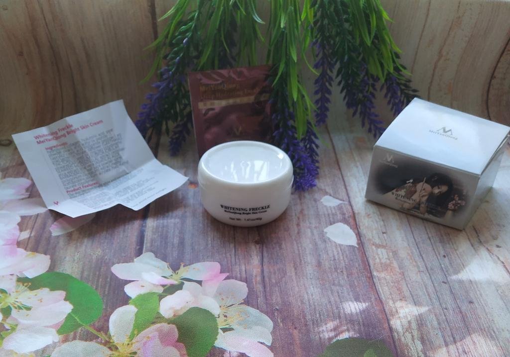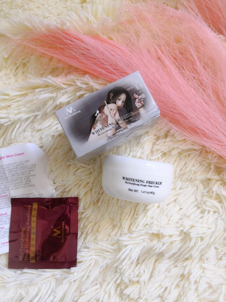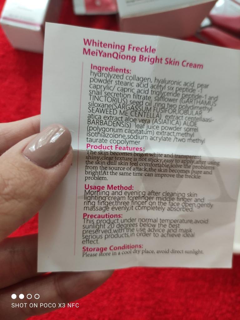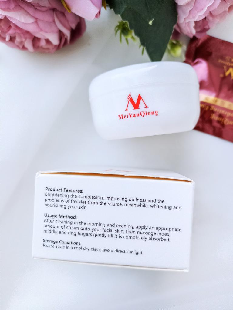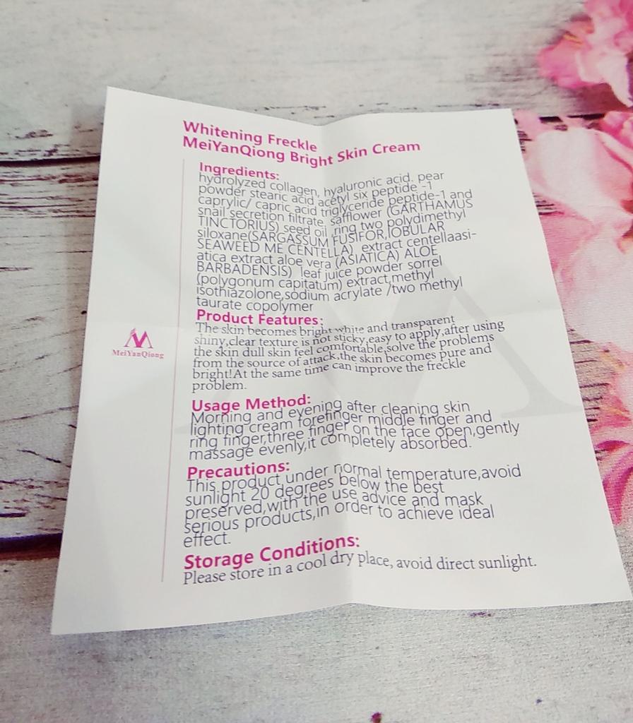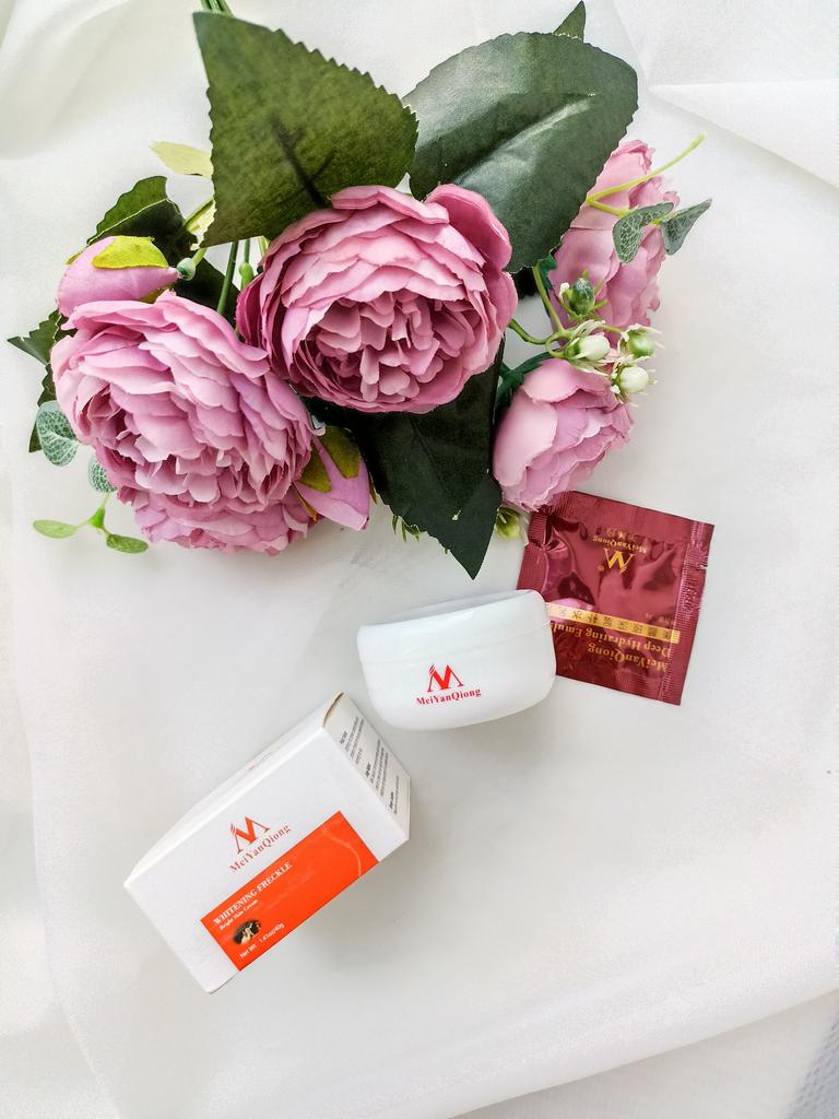 Sommersprossencreme Ich habe wenige Sommersprossen, die besonders sichtbar sind, wenn mein Gesicht im Sommer mehr der Sonne ausgesetzt ist. Aber ich habe diese Creme gegen Akneflecken bestellt. Sie wissen, dass Akne schnell entsteht und verschwindet, aber sie hinterlässt monatelang einen roten Fleck im Gesicht, wenn sie nicht behandelt wird. Diese Creme verspricht, dass sie wirksam ist, um Akneflecken und Sommersprossen zu entfernen. Ich benutze so viele Produkte dieser Marke MeiYanQoing. Und ich bin so glücklich mit ihren anderen Produkten, deshalb wollte ich es versuchen. Ich habe das Gefühl, dass meine Haut gerade im besten Zustand ist. Ich habe noch ein paar rote Flecken. Kürzlich wurde berichtet, dass das Tragen von Masken als Schutz vor Corona selbst bei älteren Menschen Akne verursacht. Da ich meine Haut mit diesen Produkten pflege, habe ich ab und zu nur wenige. Normalerweise hatte ich vor Corona (Maske tragen) in einer Woche nur wegen Make-up viel zu tun. Und ja, ich schminke mich immer noch im ganzen Gesicht, obwohl ich eine Maske trage... Weil wir Kaffee- und Mittagspausen auf der Arbeit haben, wo ich die Maske abgenommen habe 😅. Ich finde, diese Creme riecht nach Rose, was für mich ein sehr angenehmer Geruch ist. Die Textur ist moderat. Es wird leicht von meiner Haut aufgenommen. Es reicht aus, eine kleine Menge auf meine Finger zu nehmen und direkt auf die roten Akneflecken aufzutragen. Der Behälter sieht vielleicht etwas klein aus, enthält aber 40 g Creme, was im Allgemeinen die gleiche Menge aller Gesichtscremes ist. Ich weiß, dass meine Rezensionen so lang sind. Und ich bin mir nicht sicher, wie viele Leute das lesen. Wenn du bis zum Ende gelesen hast, schreibe "Banane" als Kommentar 😝. Lass uns hier eine soziale Nachricht hinterlassen 😏: Liebe alle, sei kreativ und positiv, bleib sicher, wir sehen uns, byeeeeeeeeeeeeee