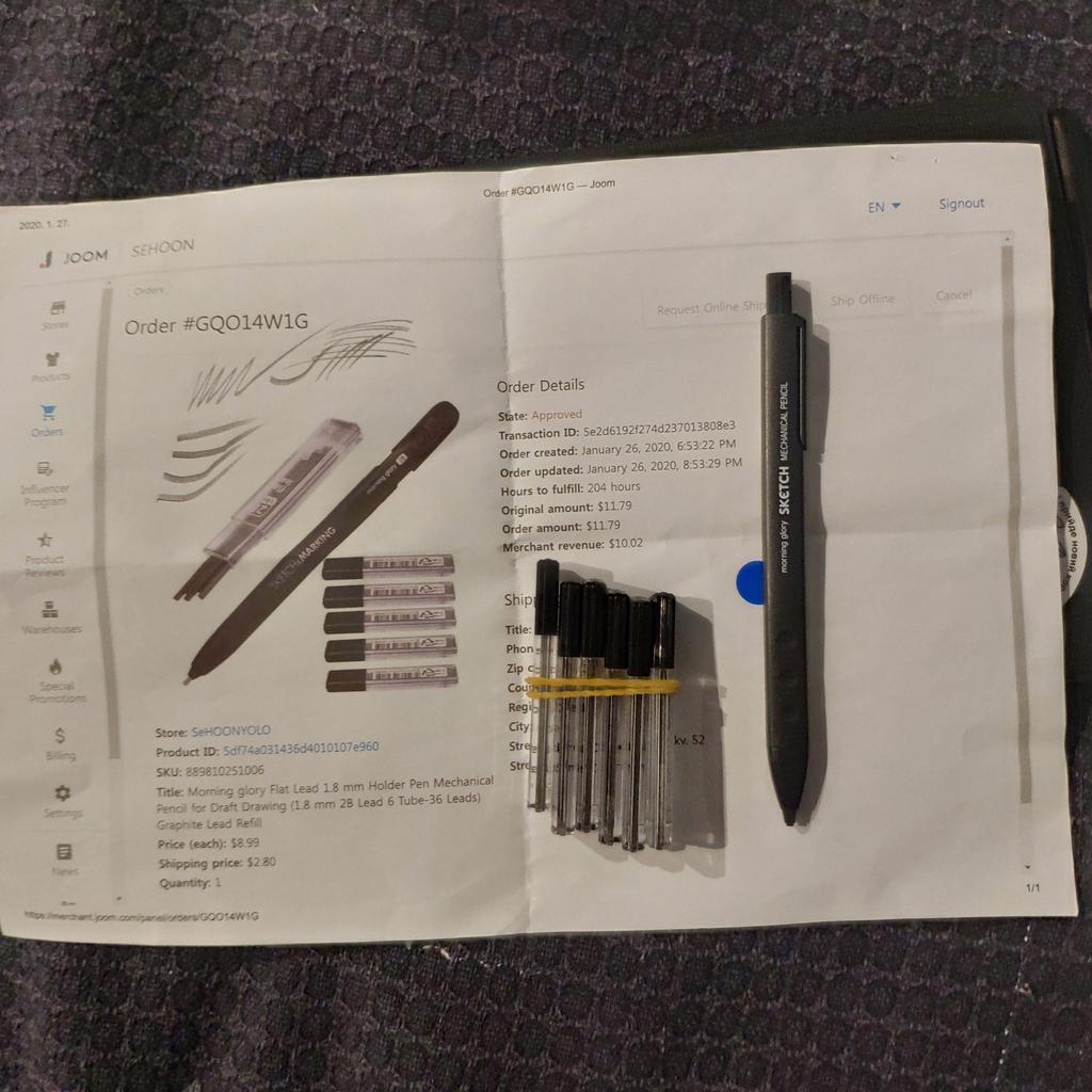 Der Bleistift ist wunderbar, ich habe einen weichen 2c bestellt. Es ist schön, es in der Hand zu halten, ich hoffe, es wird auch bequem zu arbeiten sein.