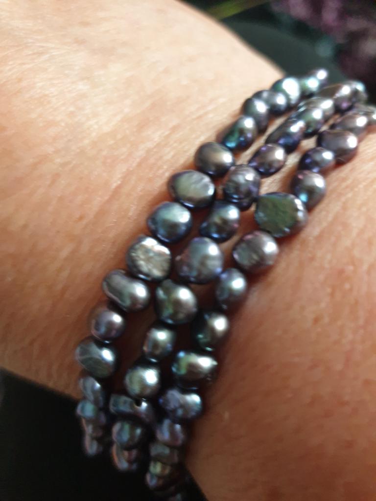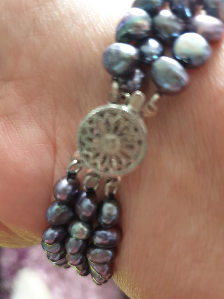 Ein Armband in vorteilhafter Länge!💜 Es ist dreireihig mit Süßwasserperlen 🦪 gestaltet und von optimaler Qualität.👍 Der Verschluß läßt sich auch gut selbst schließen.🌺 Sieht nach häufigen Tragen immer noch wie neu gekauft aus.😻 Der Versand erfolgte innerhalb 3 Wochen.🛬 Vielen lieben Dank 💐