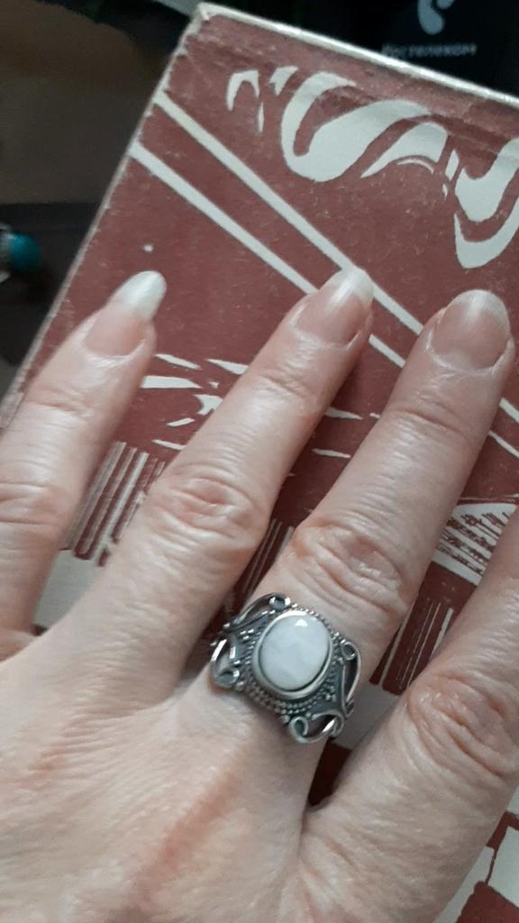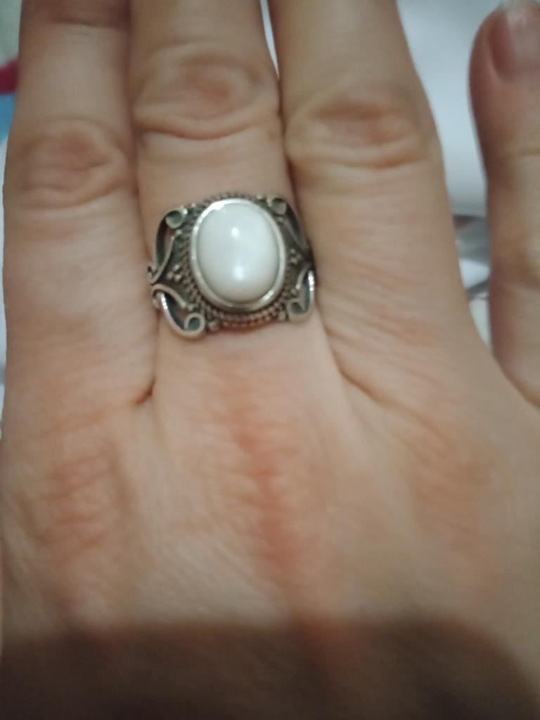 S925 Stempel ist da. Ich habe es mir größer vorgestellt und Mondstein auch schöner.🧐 Aber es ist gewiss nicht der Regenbogen Mondstein, sondern ein billiger einfaches Mondstein aus Untergrund.🤔 Genau, wie der Preis. Kein Lust ihn zu tragen. Er ist nicht schön.🤥