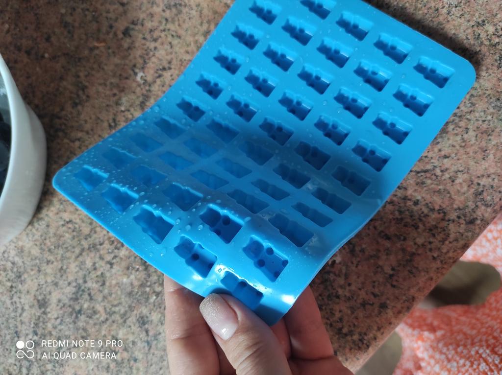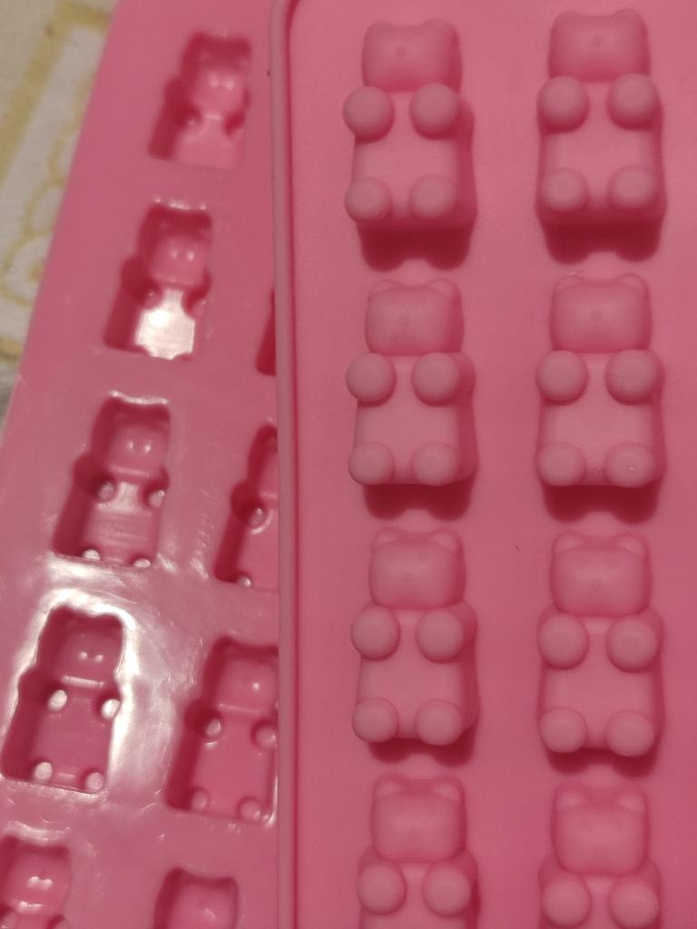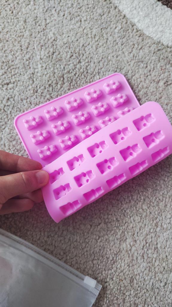 Coole Bären, nur sehr klein. Als ich Gelee hineingegossen habe, konnte ich die Gummibärchen nicht im Ganzen herausziehen.