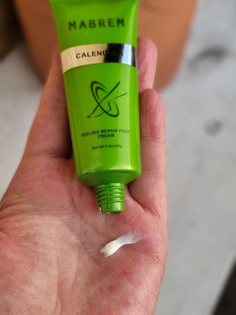 Ringelblumen-Fußcreme 👣 Marke: Mabrem ⭐⭐⭐⭐⭐ Ich finde, das ist die am besten riechende Fußcreme. Ich wünschte, es wäre wirklich fürs Gesicht, wäre toll, es den ganzen Tag lang zu riechen. 😍 Die Creme ist für den Fuß, um Risse zu heilen. Gerade im Sommer brauche ich Fußcreme auf meinen Fersen. Die Textur und Dicke der Creme ist so glatt und schön. Es ist sehr glatt und geschwollen. Ich fühle mich aufschlussreich, wenn ich die Creme auftrage. Es ist, als ob meine Haut die ganze Feuchtigkeit aufnimmt und sich so glücklich und hydratisiert anfühlt. Es klingt, als hätte ich übertrieben, aber ich habe es nicht getan. So fühle ich mich wirklich. Die Nettomenge beträgt 40g Dies ist eine erstaunliche Creme, die ich nachbestellen und auf Lager haben möchte. Bitte Mabrem, produziere eine Gesichtscreme fürs Gesicht. Es riecht gut!