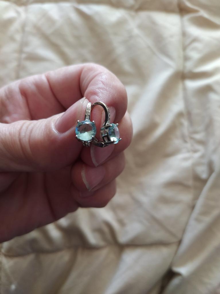 7 mm runde, vierklauenförmige blaue Kristall-Edelstein-Haken-Ohrringe, Geburtsstein-CZ-Ohrhänger, Saphir-Ohrringe
