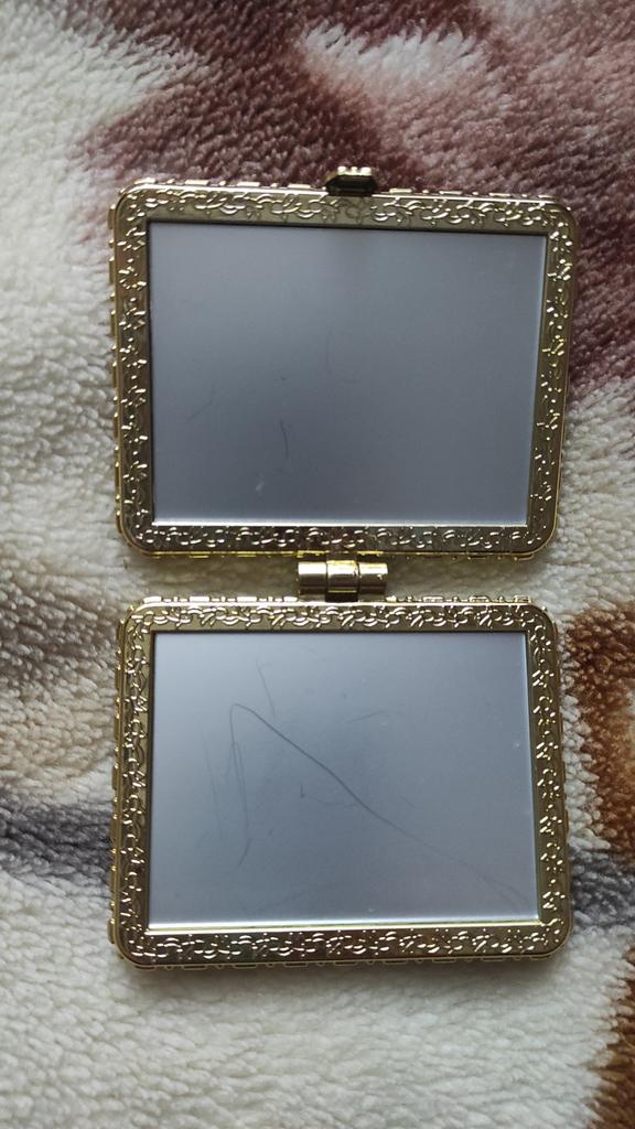 Der Spiegel ist klein und praktisch, aber es gibt ein Minus: Das Glas des Spiegels ist trüb, aber alles ist in Ordnung.