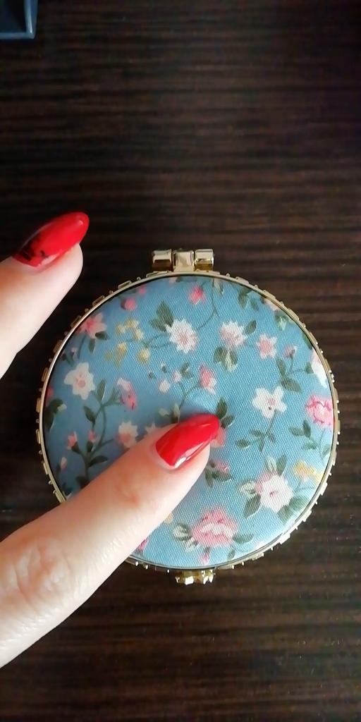 Ein niedlicher Spiegel, ich werde ihn gerne benutzen. Die Oberfläche ist aus Stoff... das ist schön und ungewöhnlich.