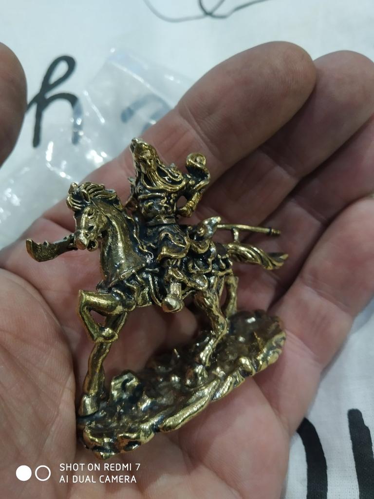 Messing Chinesischer Gott des Reichtums Reiten Pferd Guan Gong Statue Home Dekoration Zubehör Kupfer Büro Schreibtisch Dekor Buddha Ornamente