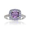 SCIONE Personalisierter Metall-Volldiamant-Mikrointarsien-Ring für Frauen in Lila mit Zirkonia