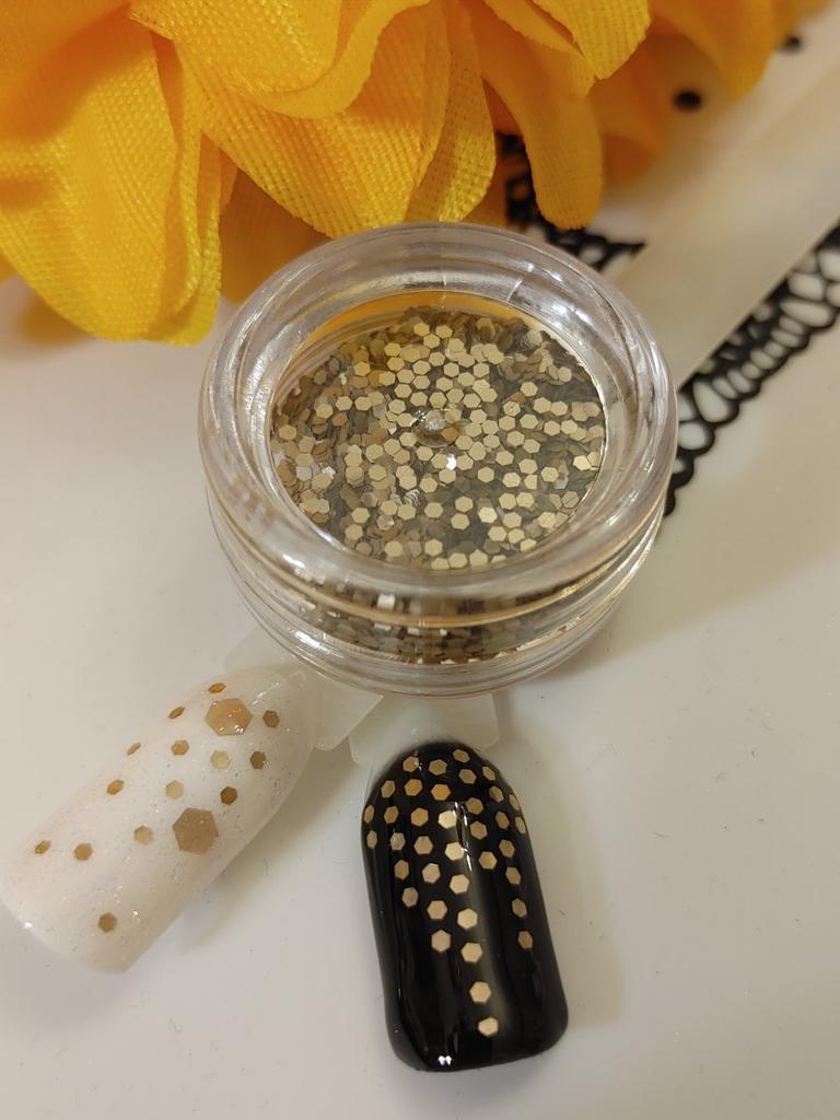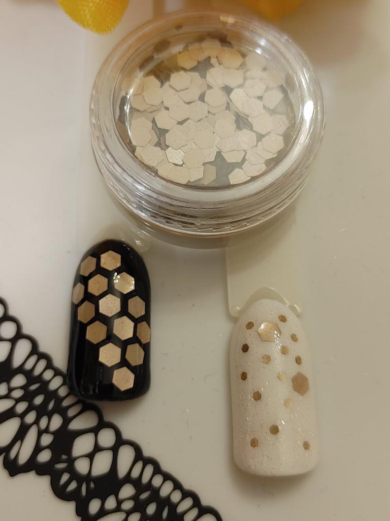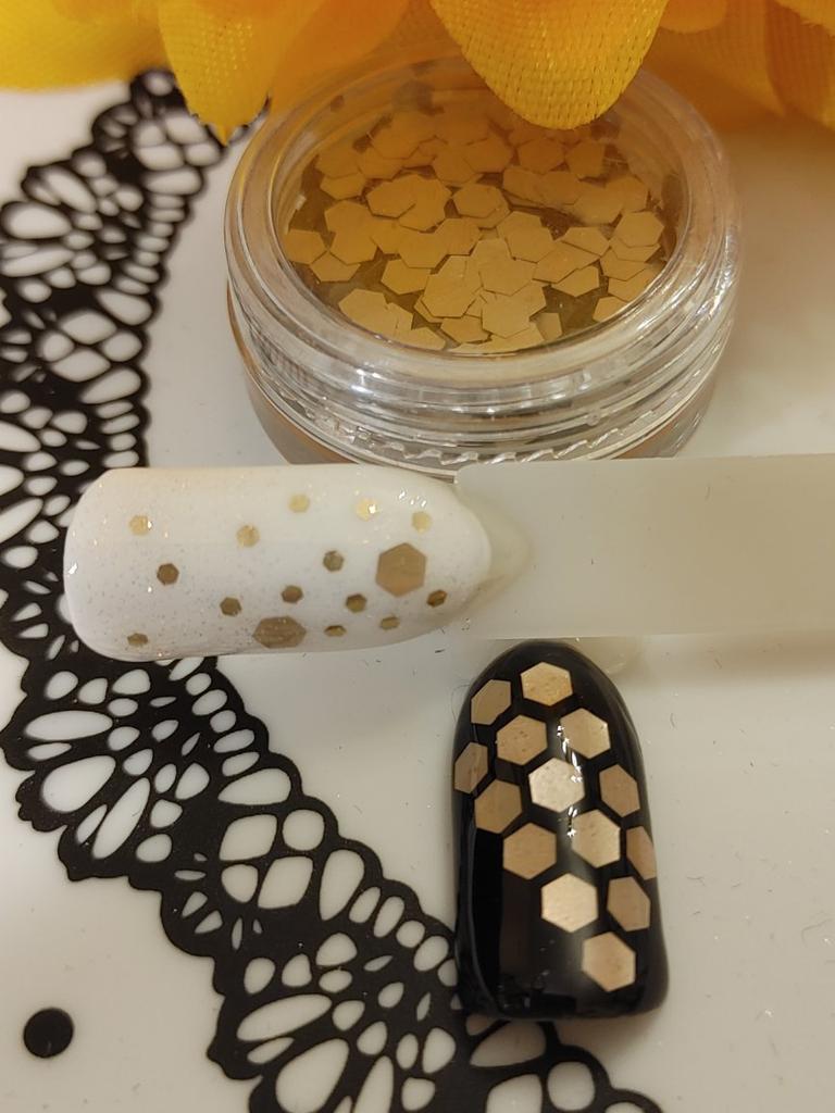 Ich habe Wabennagelschmuck in der Farbe Altgold bestellt. Ich bin ehrlich gesagt angenehm überrascht. Die Dekorationen werden mit großer Sorgfalt hergestellt. Es gibt keinen Verschnitt in der Verpackung, was leider oft vorkommt. Sie sind flexibel genug, um gut in die Spitze einzusinken und stehen nicht von der Nagelplatte ab. Aber es gibt viel zu besprechen, Kads, also ist Qualität garantiert. In Bezug auf die Größe beträgt der Würfel selbst etwa 3-4 mm. Ich bin glücklich. Daher empfehle ich es guten Gewissens weiter und vergebe 5 Sterne.