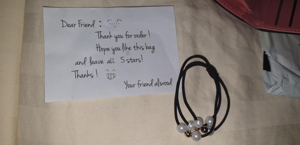 Leider nicht wie beschrieben in ganz schwarz , sondern mit hellem rose.. aber bin bis jetzt sehr zufrieden! Sogar mit kleiner "persönlichen Widmung " und als extra noch ein Armband/ Haargummi