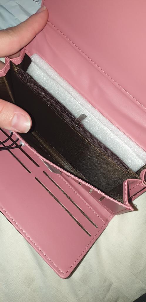Momentan riecht der Geldbeutel noch etwas, ansonsten gefällt er mir gut. Das rosane Innenteil ist für mich gewohnheitsbedürftig.