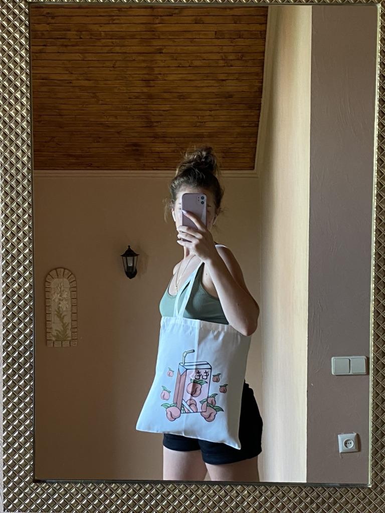 Eco Bag mit Aufdruck 🛍️ 🚚 Lieferzeit: 2 Wochen. 📦 Verpackung: schlichter schwarzer Paketbeutel und durchsichtiger Klettbeutel. ✔️ Qualität: dicker Stoff, hochwertiger und klarer Druck, die Tasche hat lange Tragegurte. Der Stoff selbst ist aus Synthetik, fühlt sich aber sehr angenehm an. 👍 Zufrieden mit allen 100 Käufen empfehle ich den Verkäufer und das Produkt.