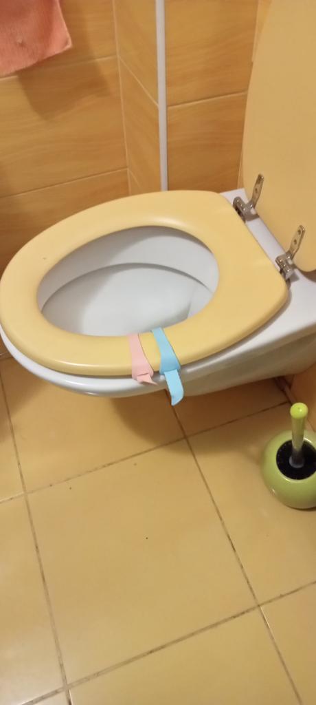 Tolles Silikonzeug für den Toilettendeckel, 2 Stk. rosa und blau. Länge ca. 25cm. Jetzt können Sie den Toilettendeckel anheben, ohne sich die Hände schmutzig zu machen. Gut durchdacht. Danke