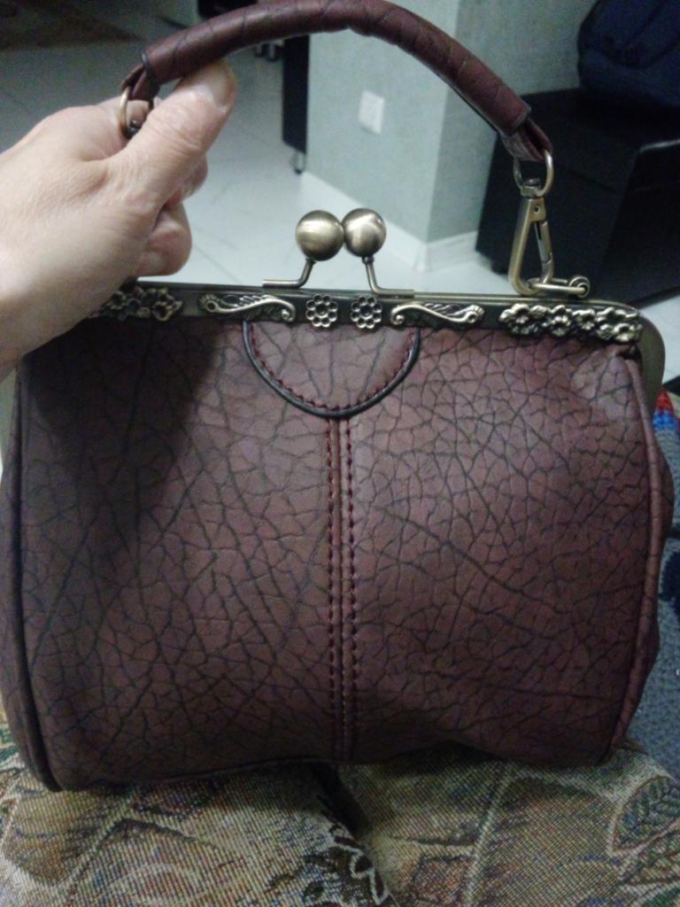 Perfekte Größe und angenehm zu tragen und sehr hübsch mit einem Verschluss zum Schließen und Öffnen, im Vintage-Stil, obwohl das Material seltsam riecht. Ich hoffe, dass es verschwindet, wenn ich es an die Luft gebe.