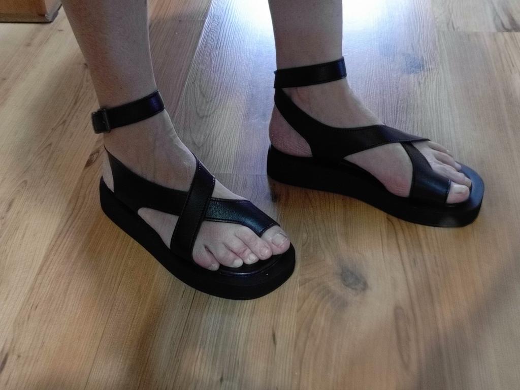Die Sandalen sind schön .Nur die Sohlen sind etwas steif und damit sind sie etwas unangenehm zu tragen. Trage normalerweise gr.40 ,bestellt wurde die Größe.41 ,aber immer noch etwas knapp.