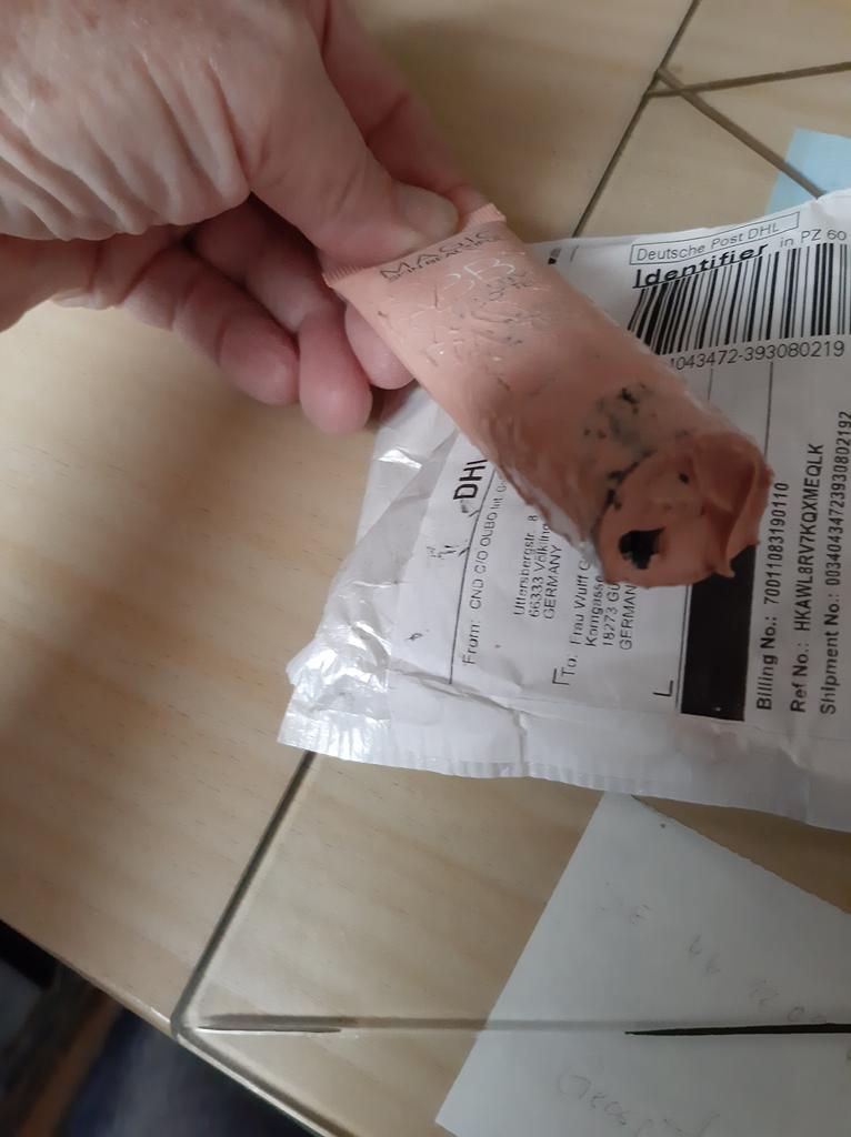 Das Paket war beschädigt. Die Cremetube war kaputt. Der Inhalt Tube der war im Umschlag verteilt.