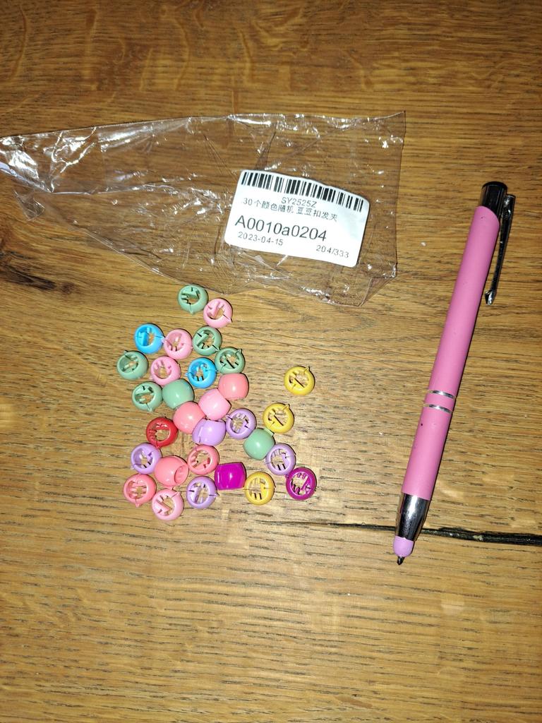 Artikel kam wie beschrieben nach 3 Wochen unbeschädigt und gut verpackt an. Meine Tochter (4 jahre) hat sich sehr über die schöne bunte Farben gefreut. Ist schon lustige Idee verlangt aber auch, meine Meinung nach, viel Geduld und Fingerspitzengefühl. Die kleine Teilchen sind schon nicht sehr leicht(was anderseits auch gut ist) aufzukriegen. Gerade wann man wie ich in einer Hand die haarsträhne hat und mit der anderen versucht es aufzumachen🙈Tipp!!!erst alle Teilchen aufmachen und dann an die Haare anbringen. An sich halten die clips auch dran, gehen aber dann leicht runtergezogen vom pferdeschwanz ab. Kann man also auch so machen, besser aber vlht die clips so anbringen dass die nicht runterrutschen können. Die Menge von 30 Stück reicht für den kopf meiner 4 jährigen Tochter aus, ist jedoch jedem selbst überlassen wie man es mag😉