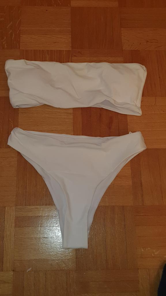 ✨ 2-teiliger Badeanzug ✨ An sich ein schöner Bikini 🖤 Die Qualität ist auch in Ordnung 👍🏻 ▪️trägerlos ▪️hohe Taille ▪️herausnehmbare Cups ➖ die Pads sind nicht fixiert ➖ es gibt kein Gummi an dem Top Ich habe den Bikini in der Größe M Meine Maße sind 88/70/90 Leider passt er mir nicht. Das Höschen ist mir zu eng und das Oberteil ist an der Unterbrust zu weit. Schade 😓