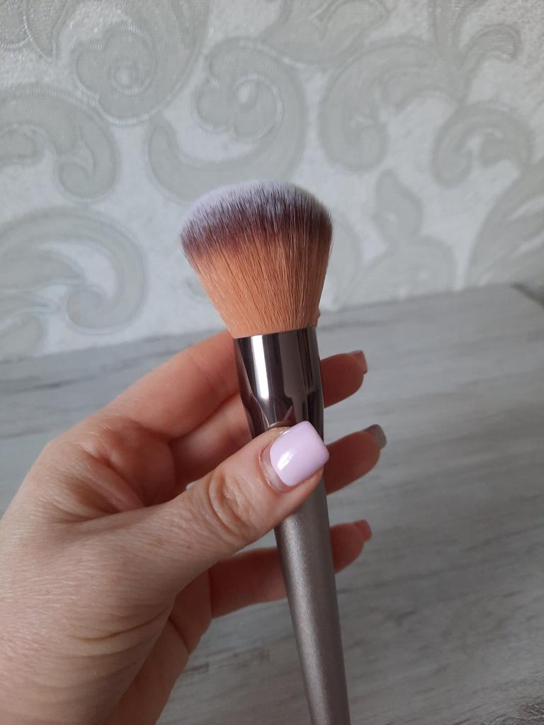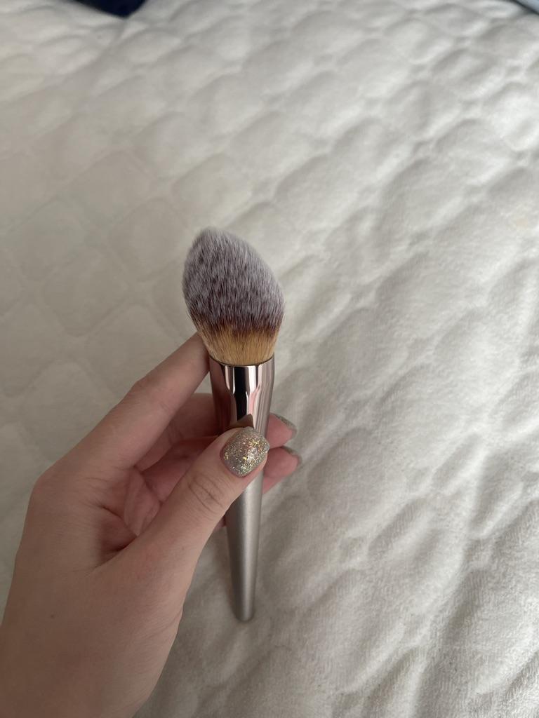 Sehr hochwertiger und dichter Puderpinsel Der Griff hält schön, er ist lang genug. Die Bürste ist dicht und hat sehr feine Borsten. Das Puder lässt sich wunderbar auftragen. 🥰👌 ⭐️⭐️⭐️ Empfehle ich