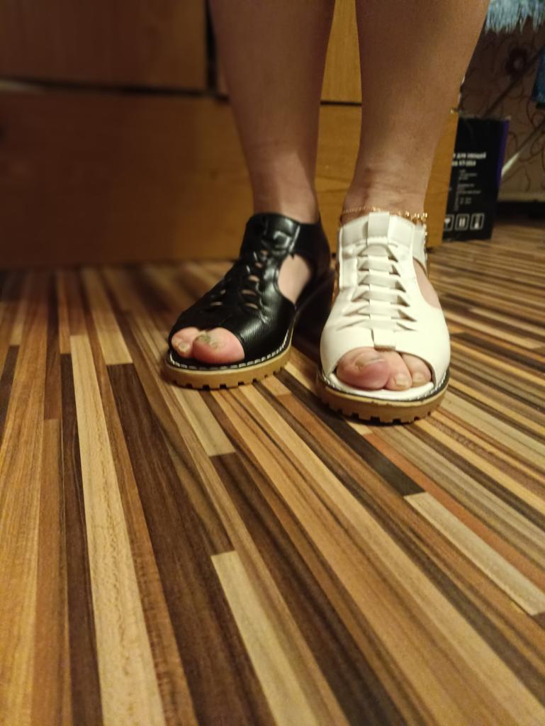Coole Sandalen, habe ich in zwei Farben bestellt. Kein Geruch, bequem, die Größe entspricht. Danke an den Hersteller!