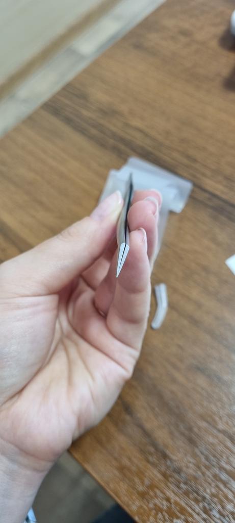 Die Pinzette kam sehr schnell zu mir. Es ist groß, schön gemacht, hat eine Spitzenkappe und ein Etui. Es ist nicht zu leugnen, dass es sehr scharf ist und das wollte ich, aber leider fängt es relativ schlecht und es passiert, dass es das Ding, das es hält, loslässt.