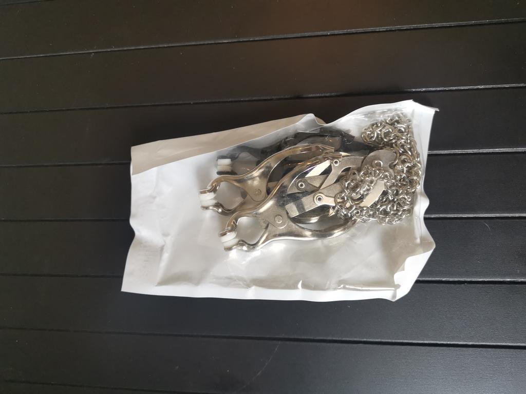 Fühlt sich billig an, sieht aber aus wie auf dem Bild. Nicht die stärksten Klemmen und die Kette, die sie verbindet, fühlt sich sehr wackelig an. Auf jeden Fall als gute Einführung in Klemmen zu empfehlen, gut, wenn Sie das Aussehen von Kleeblattklemmen wollen, aber wenn Sie nach einer solideren Klemme suchen, würde ich mein Geld für etwas anderes ausgeben!