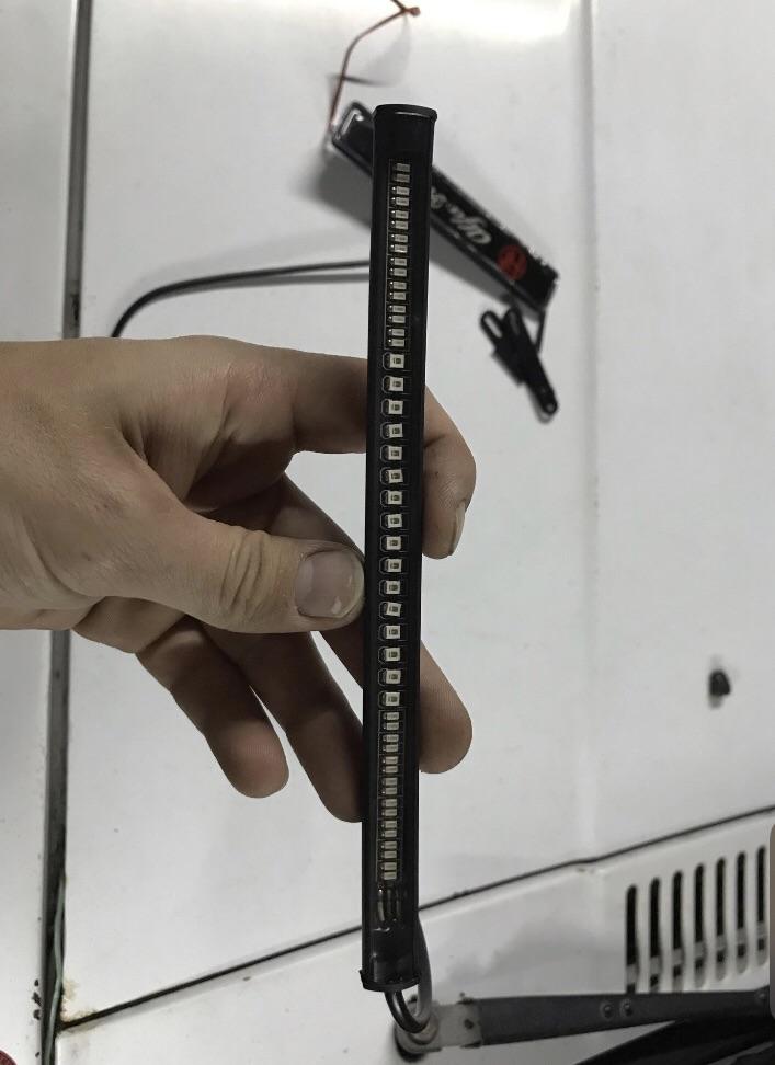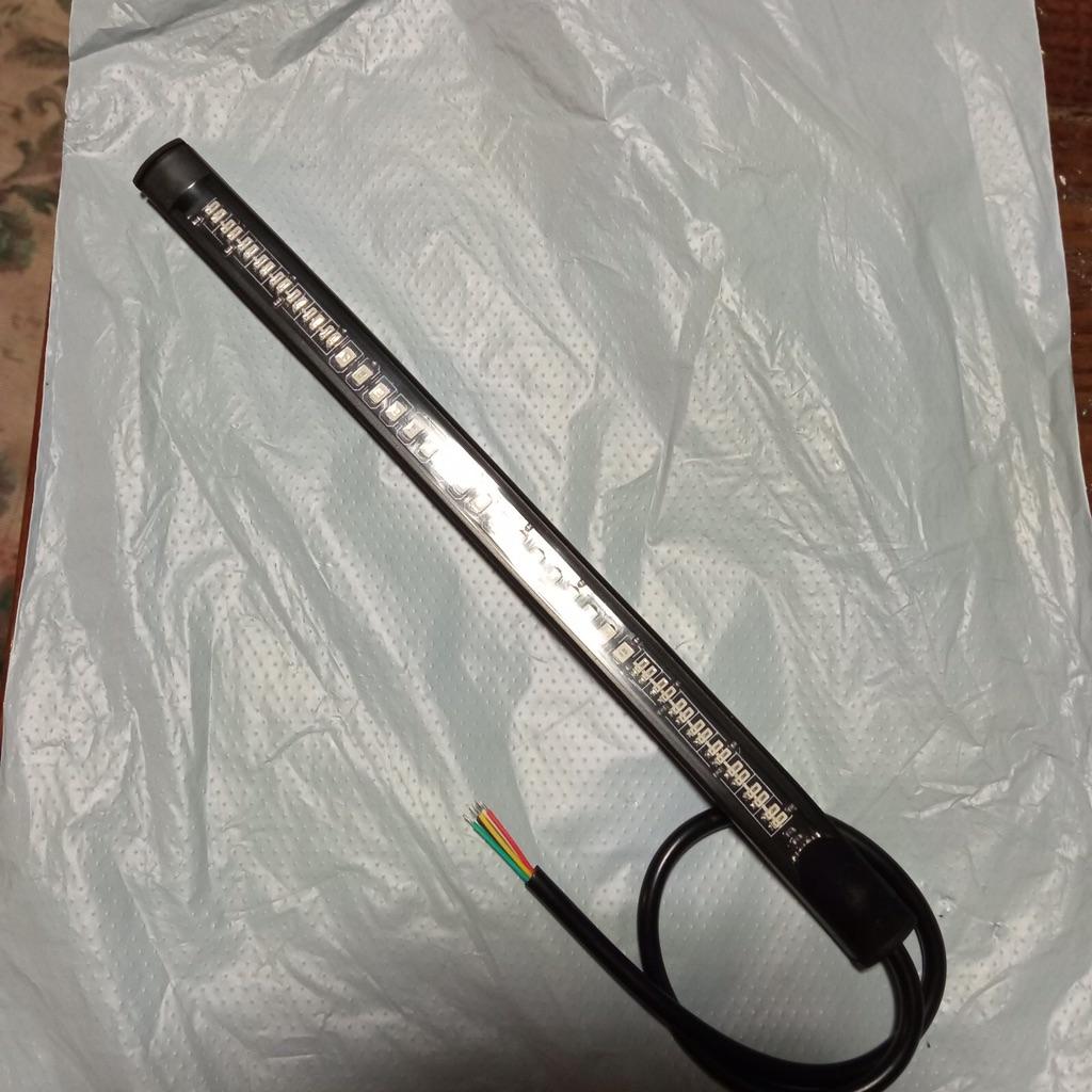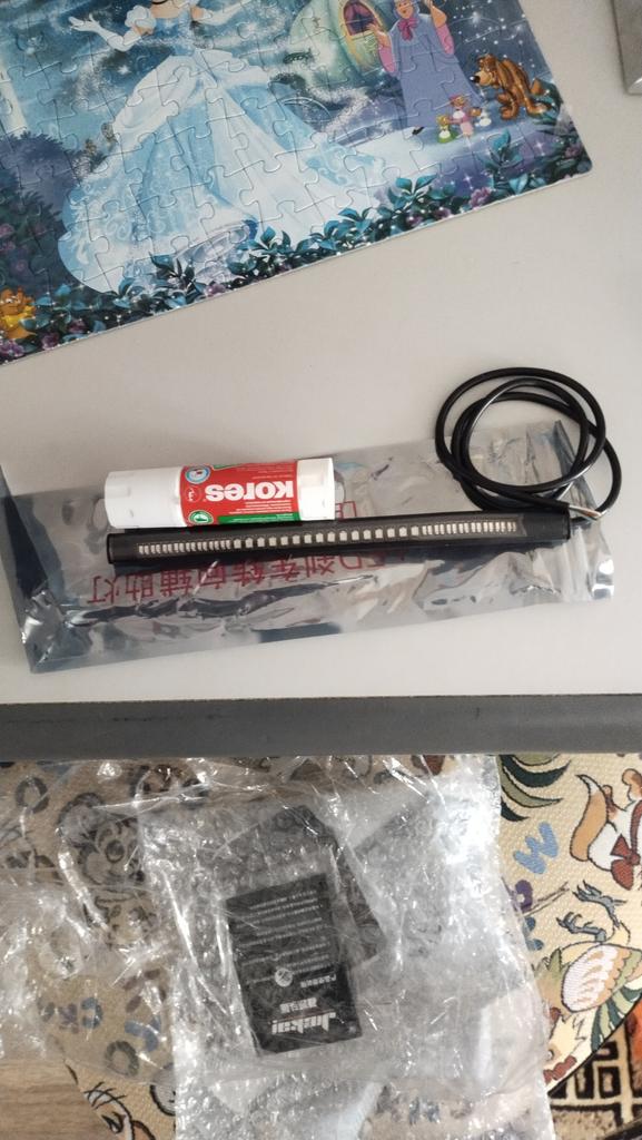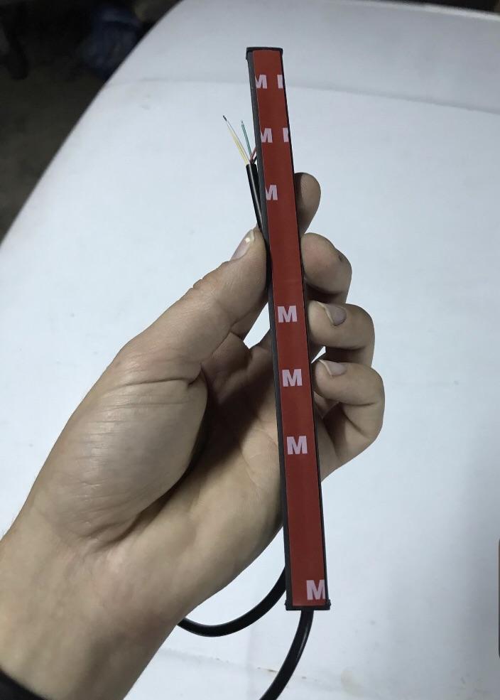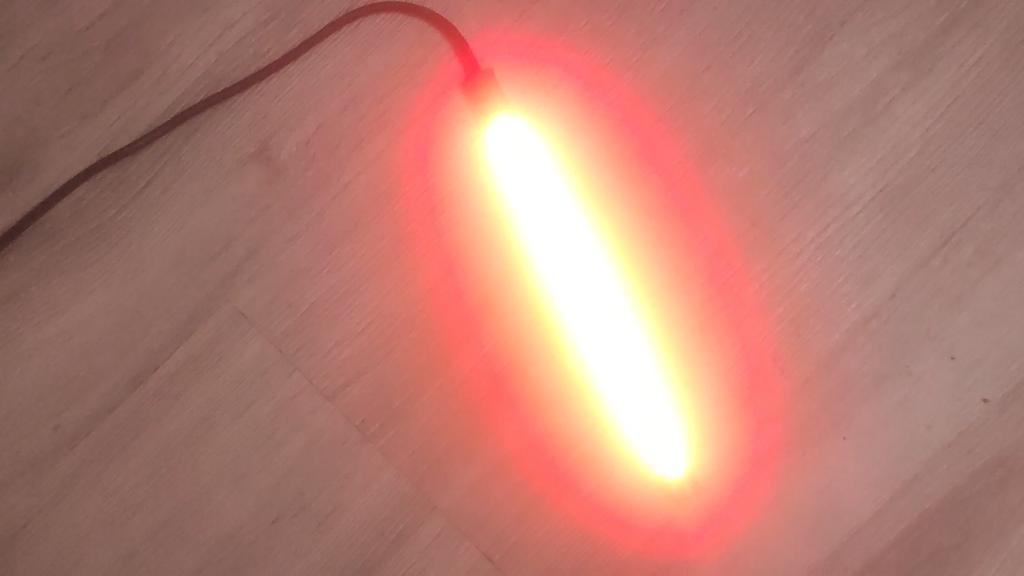Es leuchtet hell, eine flexible Basis, aber es ist besser, sich nicht viel zu biegen. Auf der Rückseite befindet sich eine Klebebasis, die jedoch nicht zuverlässig haftet, daher ist es aus Gründen der Festigkeit besser, mit Sekundenkleber zu kleben