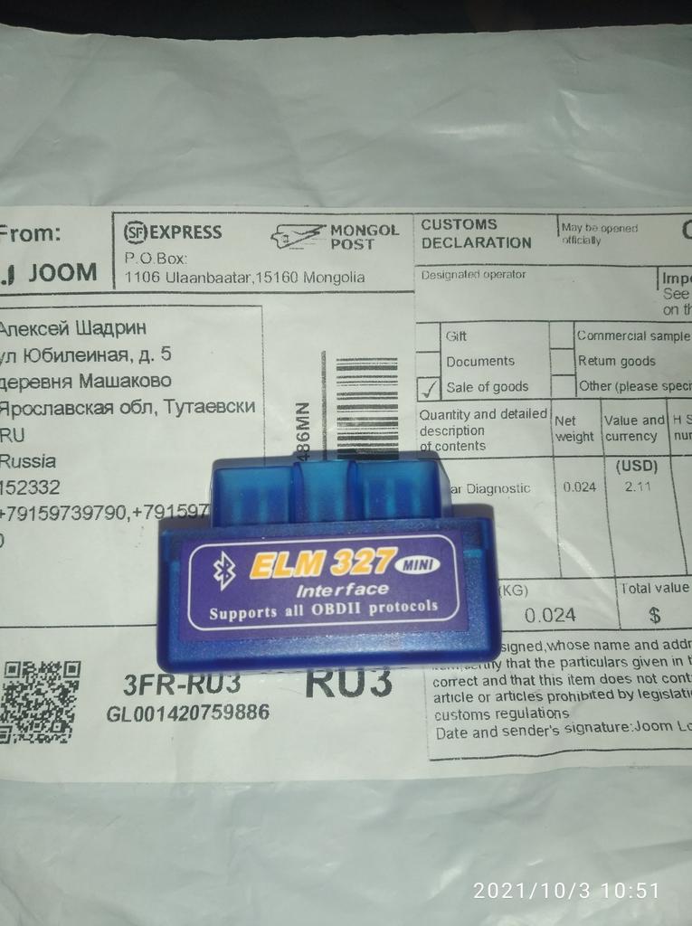Ich habe alles erhalten, alles ist in Ordnung, Respekt vor den Absendern