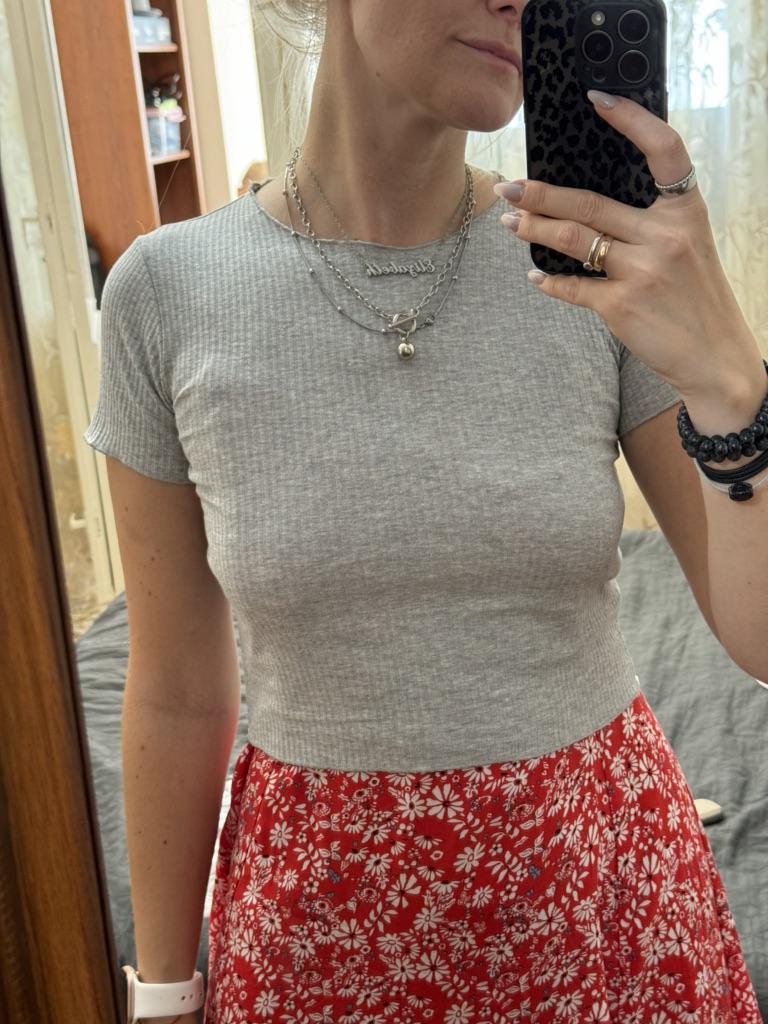 Schönes Oberteil, vielleicht ein wenig durchscheinend. Ich habe M für meine XS-S bestellt, aber wenn Sie eine lockerere Variante wünschen, ist es besser, L zu bestellen.