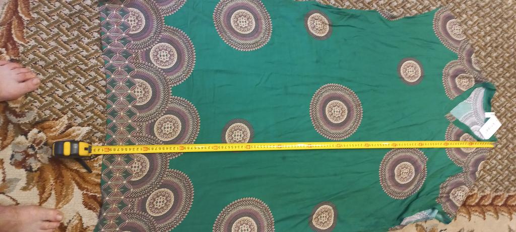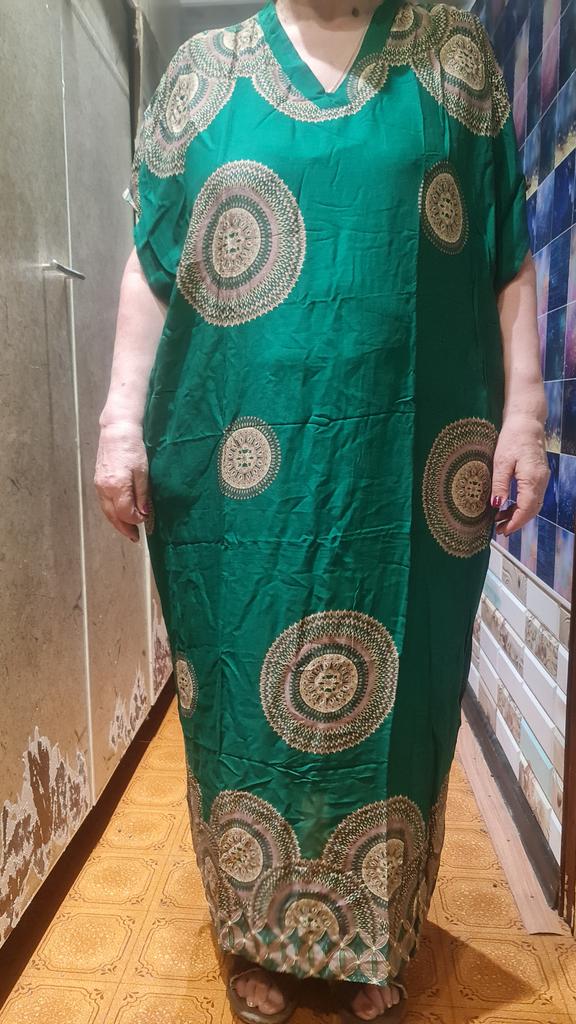 Schönes Hauskleid. Passt perfekt zur Größe 54-56. Der Stoff ist gut (sieht aus wie Grundnahrungsmittel). Ich war mit dem Kauf zufrieden.