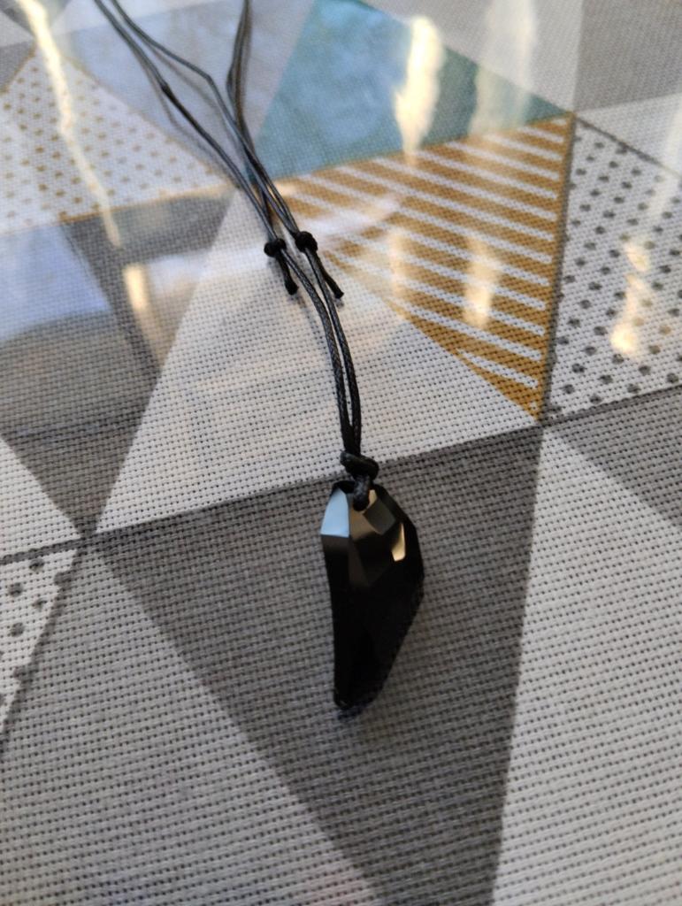 Sehr schöner Anhänger. Nicht Plastik. Glas. Keine Chips oder Kratzer. Die Spitze ist dünn. 2-3mm. Geknotet, damit Sie verschiedene Längen machen können. 👍