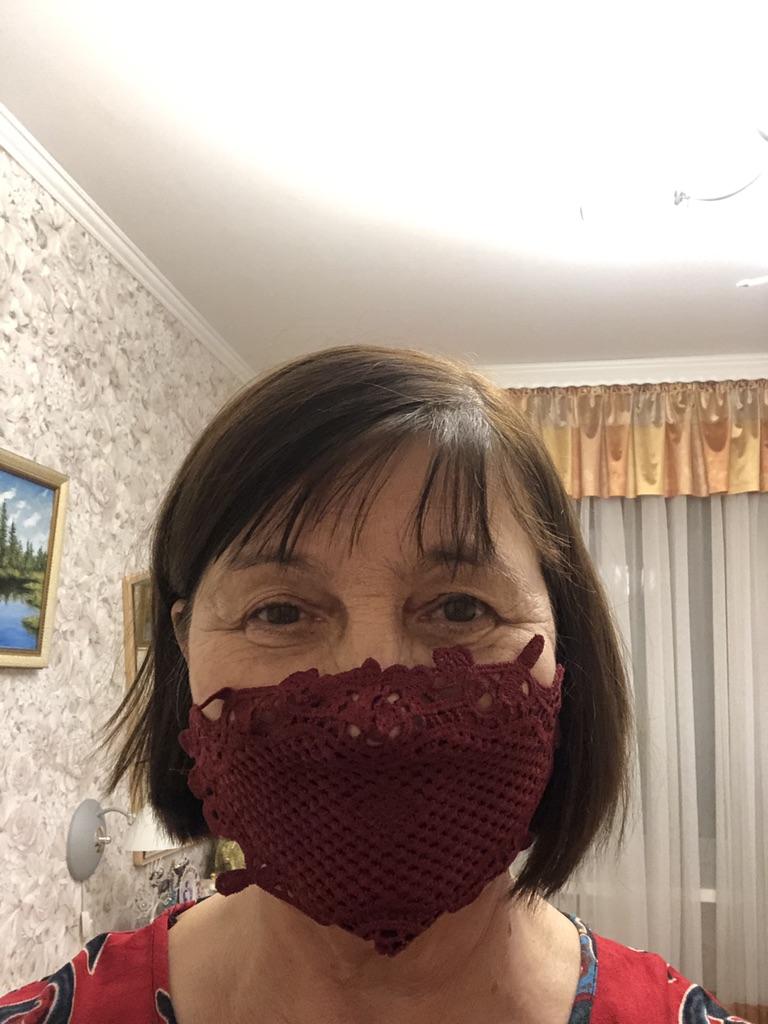 Die Maske ist hübsch, aber ich glaube, sie dient nur zur Zierde und schützt nicht vor Viren. Man müsste sie unten auspolstern oder sich etwas einfallen lassen.