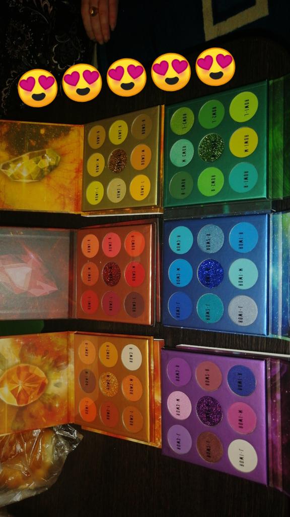 Ich habe das Paket am 10. Oktober bestellt und am 10. November erhalten. Ich weiß nicht warum, aber die Titelnummer war nicht an die Telefonnummer gebunden. Nun zum Set selbst: Sicher verpackt, alles heil angekommen. Schicke Paletten 😍 In jeweils 9 Farbtönen – 2 seidenmatt, 6 matt und eine Nachfüllung – Glitter aus Mikroplastik. Nachfüllungen sind groß, genug für eine lange Zeit) Satin- und Matttöne laut Formeln sind unterschiedlich, Matt ist trockener und tönt die Haut. Schatten fallen minimal ab. Sowohl matt als auch satiniert schmoren gut. Liegen Sie flach, hell, satte Farbe. Pigmentierung auf höchstem Niveau, aber es gibt einige helle Farbtöne, sie sind fast transparent (siehe Foto). Wenn Sie sie jedoch verwenden, um den Augenwinkel oder den Bereich unter der Augenbraue zu beleuchten, werden sie zustimmen. Als nächstes sehen alle Farbtöne beim Auftragen heller aus als die Farbe in der Palette. Und die Paletten selbst auf den Magneten) als ob alles))) Im Allgemeinen bin ich mit dem Produkt zufrieden, diese Schatten werden mir lange genug reichen. Für seinen Preis ist die Qualität unglaublich!