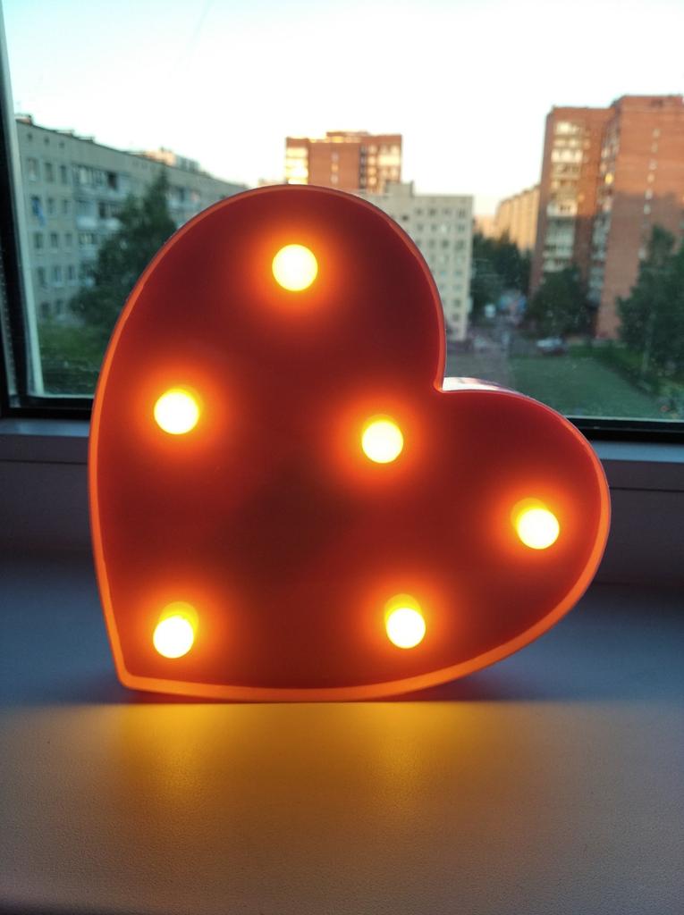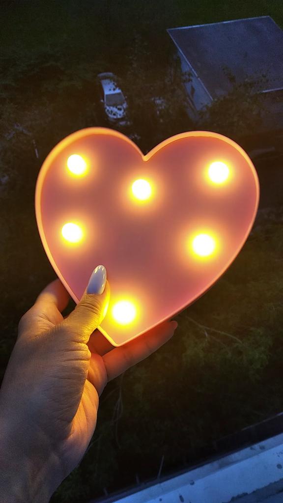 Nachtlicht. Ich bestelle erneut. Ich bin sehr zufrieden. Süßes kleines Ding für den Innenraum. Bitte beachten Sie, dass das Herz rosa ist. Für mich war es eine Überraschung, weil ich nicht auf die Farbe geachtet habe. Das heißt, es stellt sich heraus, dass alle Buchstaben weiß und das Herz rosa ist.