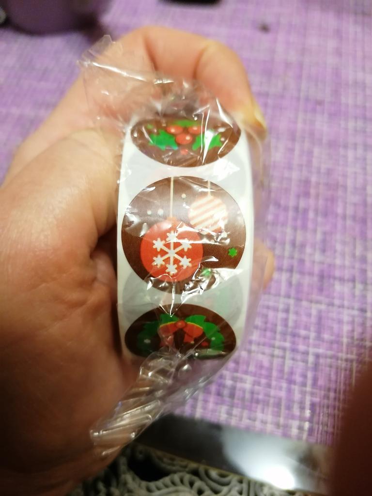 Rolle mit Weihnachtsaufklebern, als ich sie zum ersten Mal nehme, aber als ich sie so schön sehe, habe ich sie zum Verschließen von Weihnachtspaketen bekommen