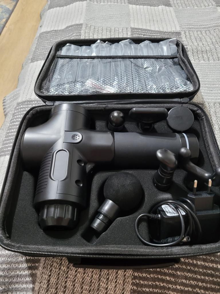 Das Massagegerät wurde komplett geliefert. Ein guter läuft 2 Stunden, aber man muss ihm eine Pause gönnen, weil er überhitzt. Der Wert der Gebühr steigt ständig. Es funktioniert gut, aber ich habe es bekommen, es fehlt oder es nutzt sich stark ab. Bei häufigem Düsenwechsel kommt es zu Spiel (die Düse wackelt). Schön verpackt. Nicht zufrieden mit der Qualität des Produkts!!!