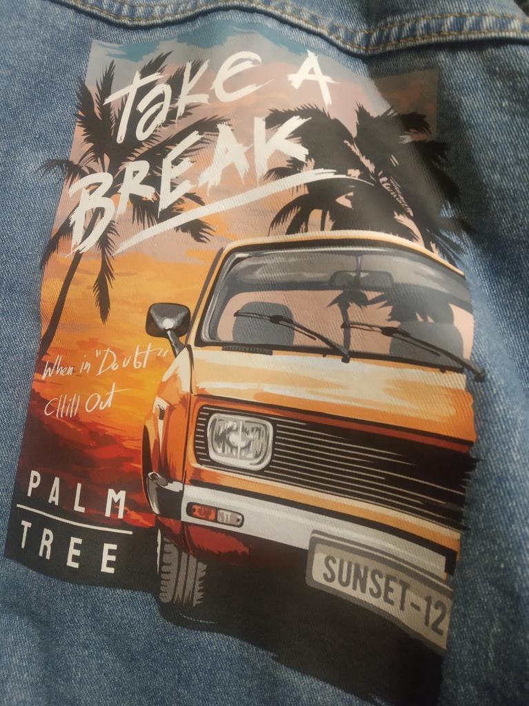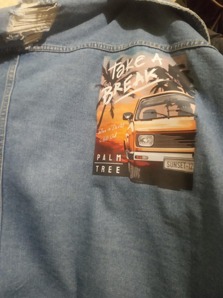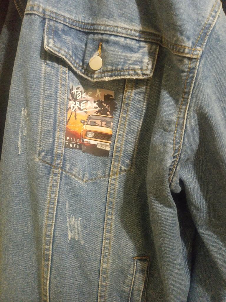 Habe die Jeansjacke origineller gemacht) die Aufkleber sind wunderbar, leuchtend, lassen sich leicht mit einem Bügeleisen aufbringen
