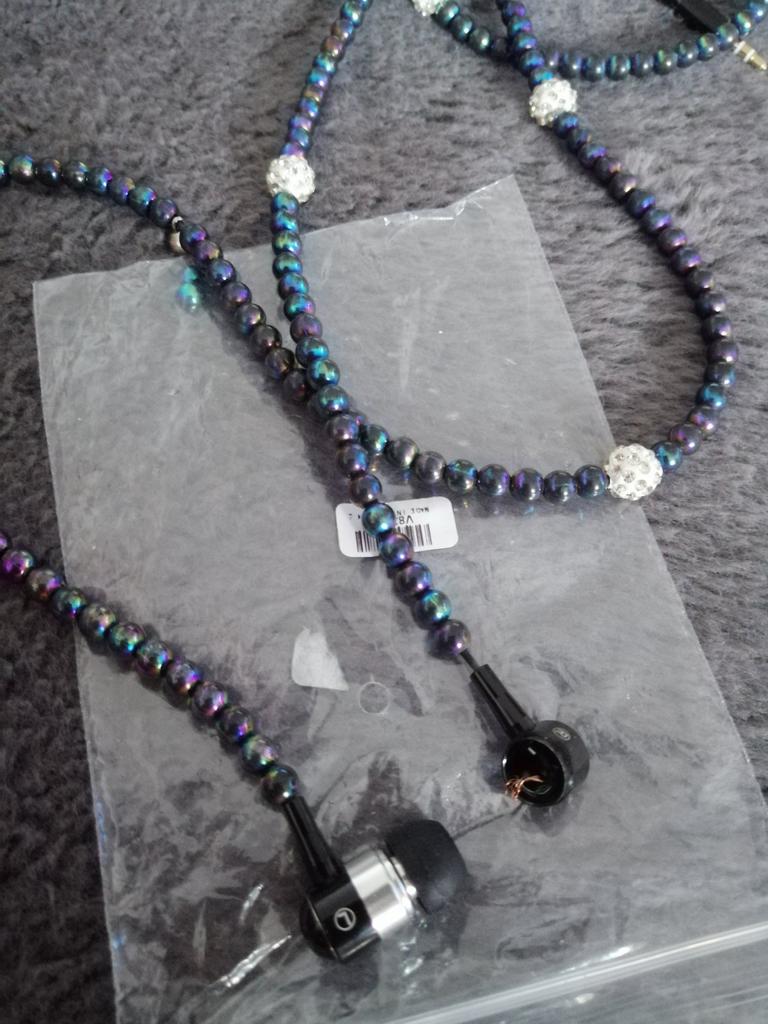 Die weißen perlen sind leider nicht sehr schön, fehlen ein paar kleine Steine Super klang leider halten die Kopfhörer bei mir nicht