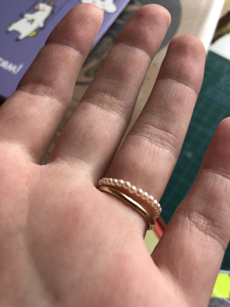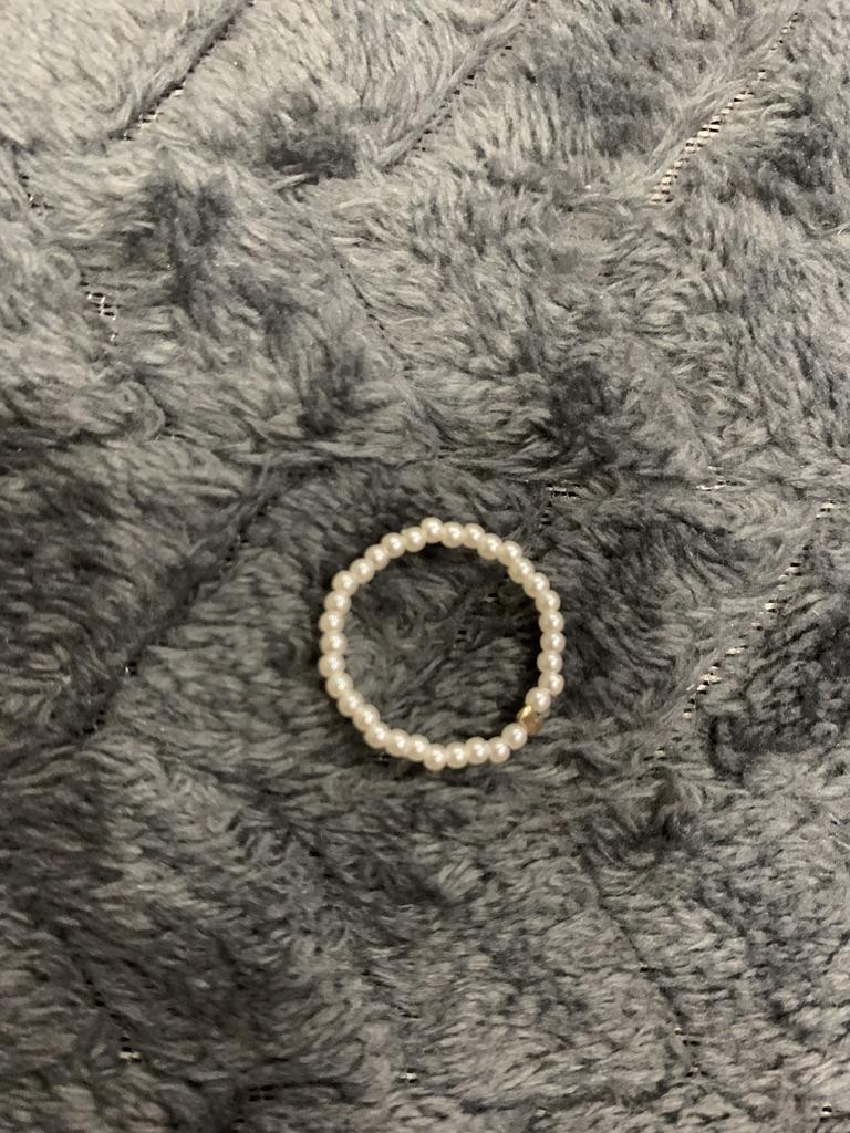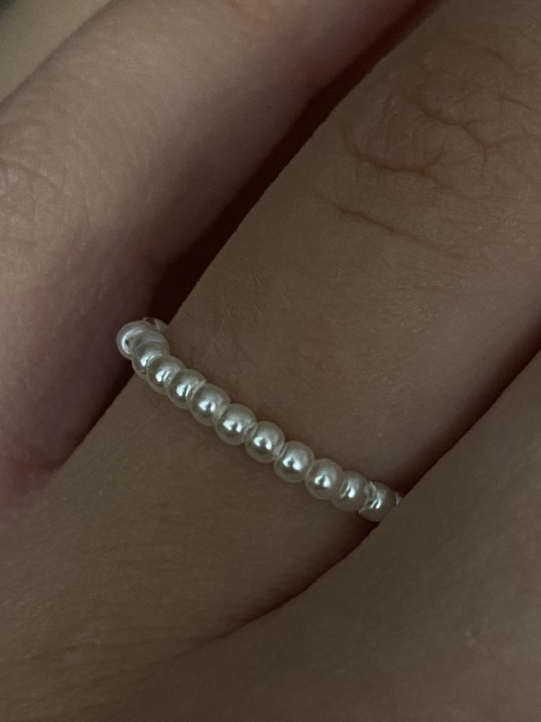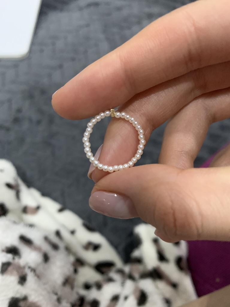 Hübscher Ring. Größe 16-16,5. Dehnt sich nicht. Die Perlen sind sehr klein und haben einen kleinen Goldeinsatz. Ein exquisites Detail für Ihren Look.