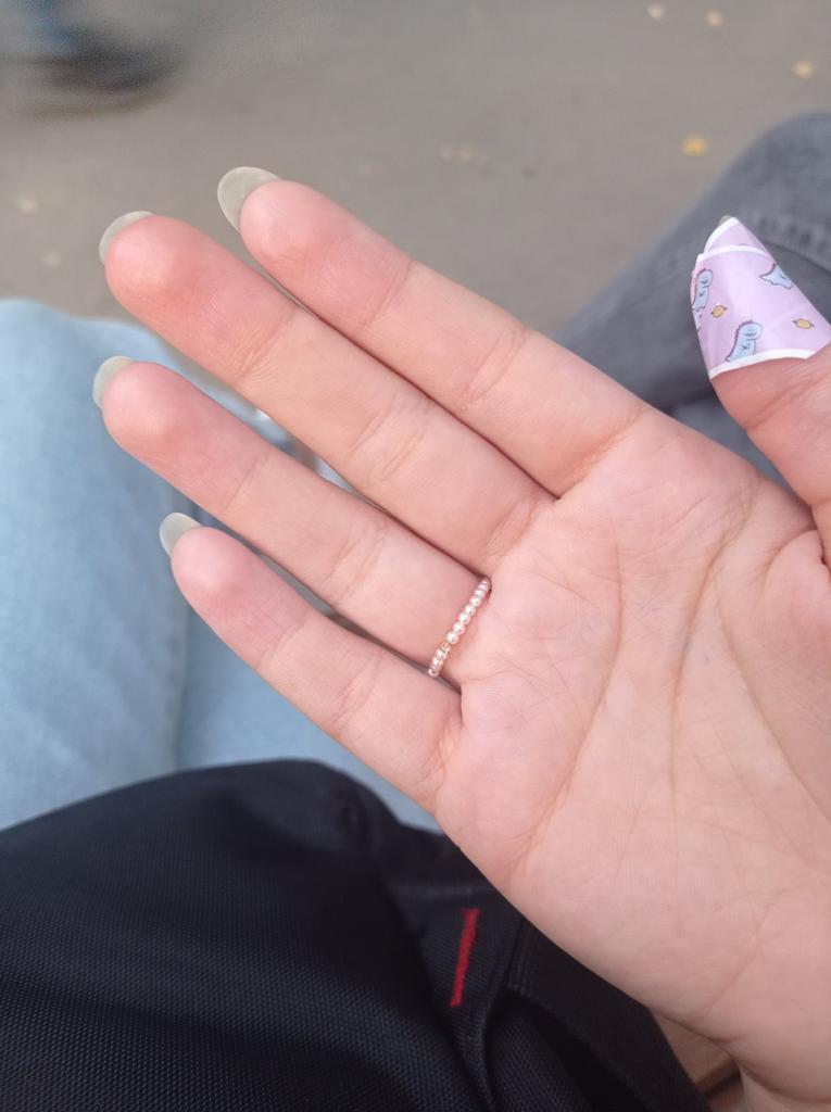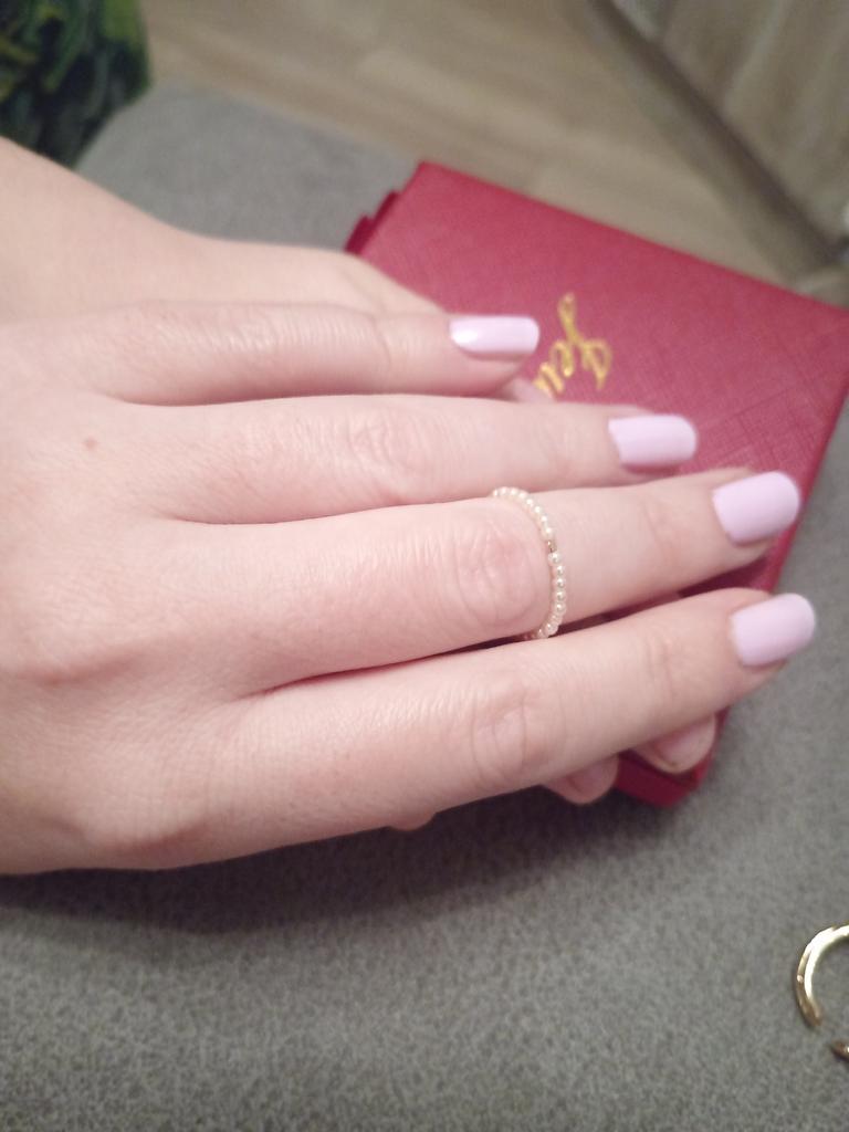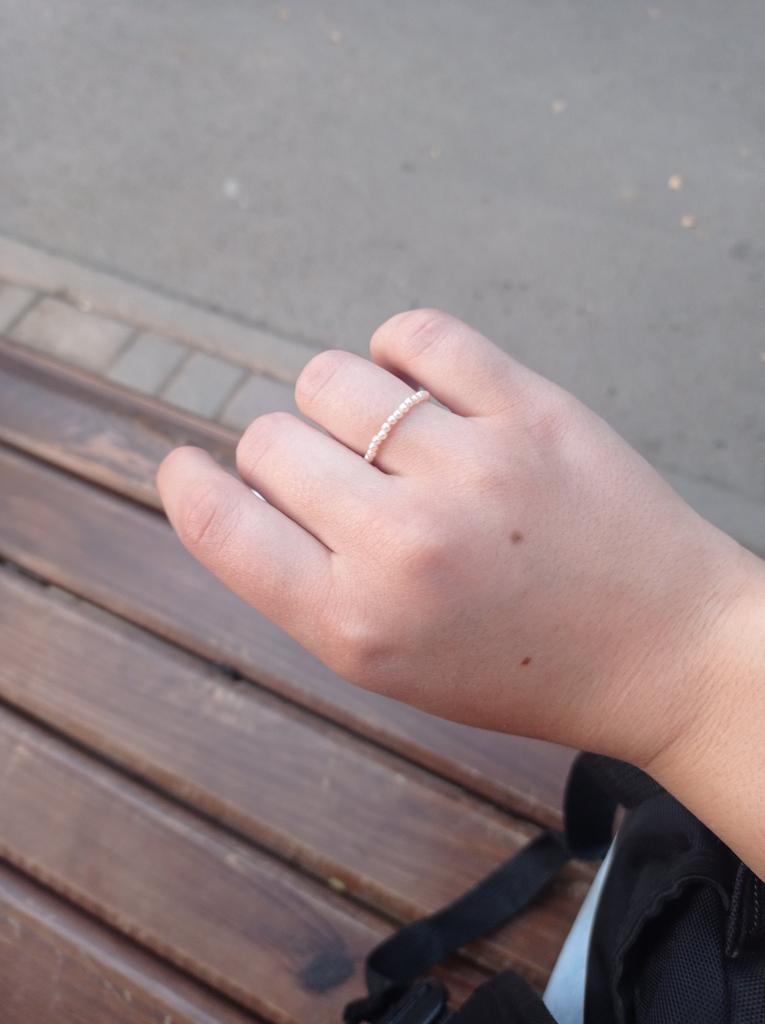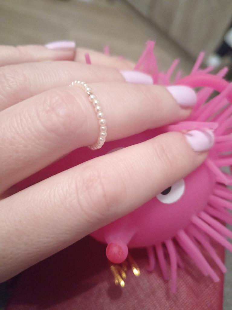 Hübscher Ring. Größe 16-16,5. Dehnt sich nicht. Die Perlen sind sehr klein und haben einen kleinen Goldeinsatz. Ein exquisites Detail für Ihren Look.
