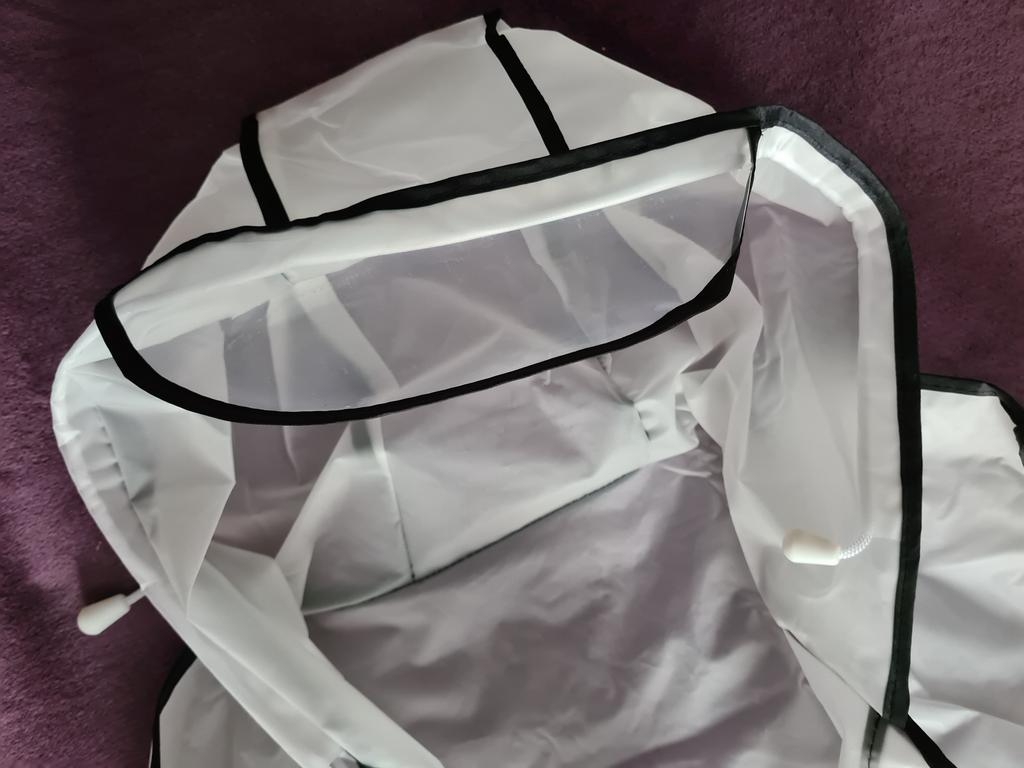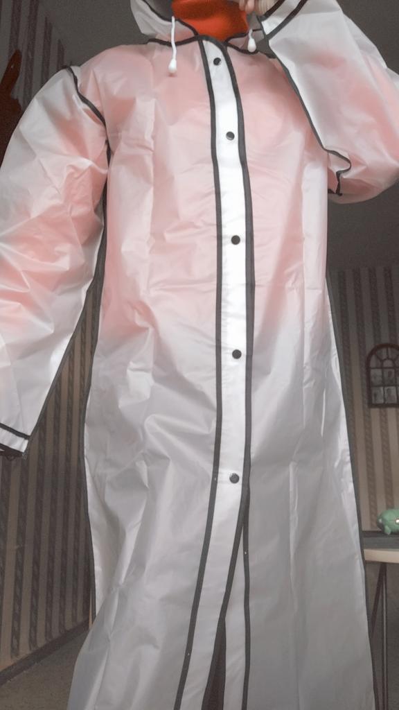 Insgesamt ein guter Regenmantel. Ich habe mir speziell ein größeres Exemplar mitgenommen, um es über meinem Mantel zu tragen. Ich dachte, es wäre weicher, wie Silikon, aber es ist hart und raschelt wie eine Tüte.