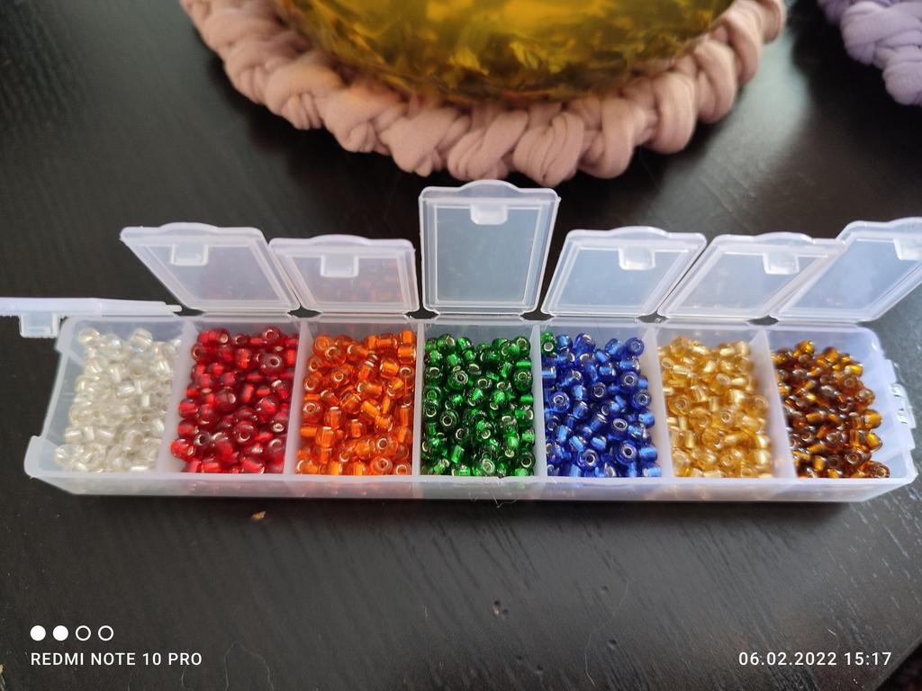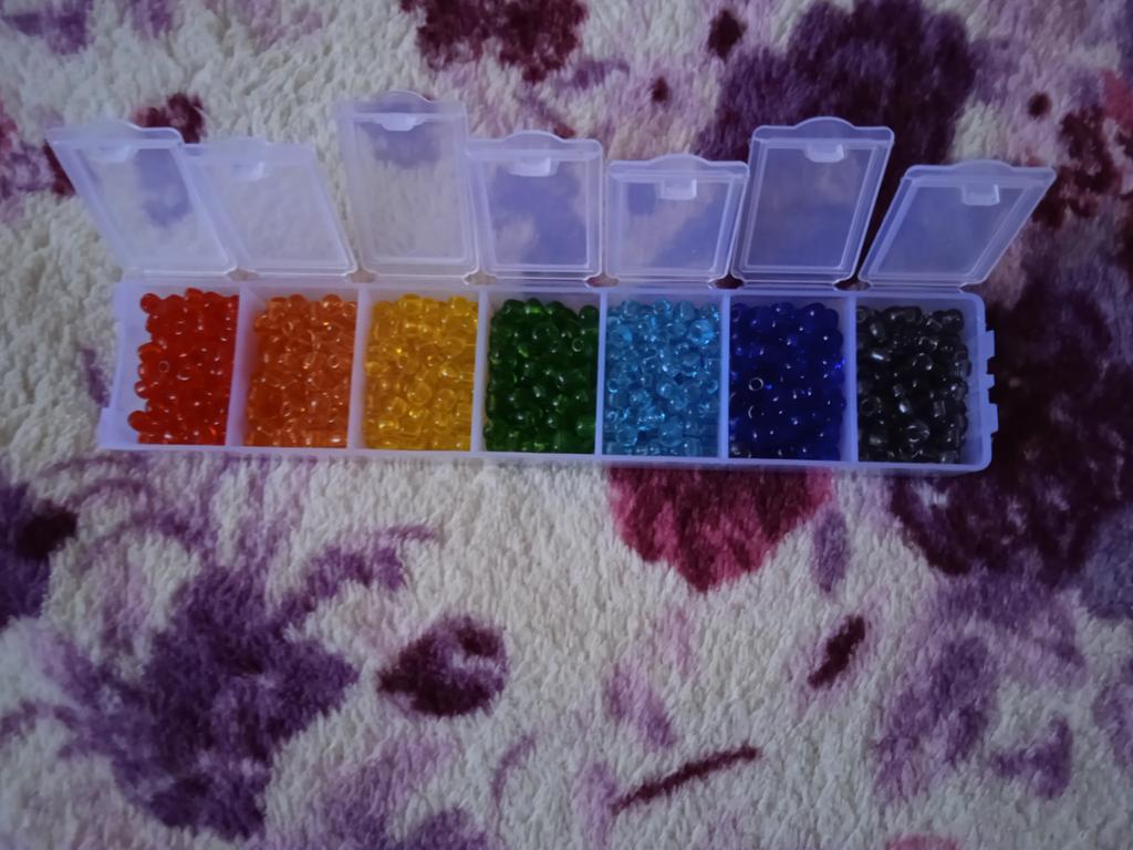 Schöne Perle. Verschiedene Größen, aber für den Anfang nicht schlecht und für einen solchen Preis. Wenn Sie das Weben mit Perlen ausprobieren möchten, aber kein Geld für ein teures ausgeben möchten - das ist genau das, was Sie brauchen! Ich bin froh!!!