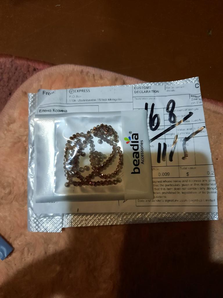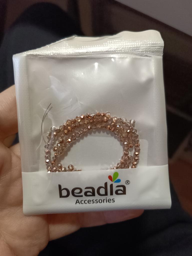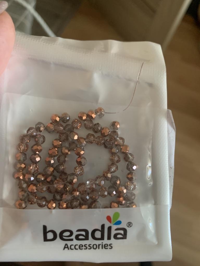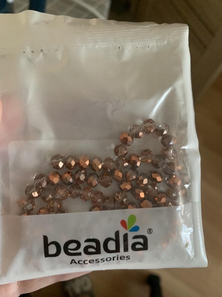 Perfekt verpackt. Die Perlen sind glatt, facettiert und bemalt wie auf dem Foto. Der Faden ist wahrscheinlich länger als 32 cm und liegt angenehm in der Hand. Ich empfehle.