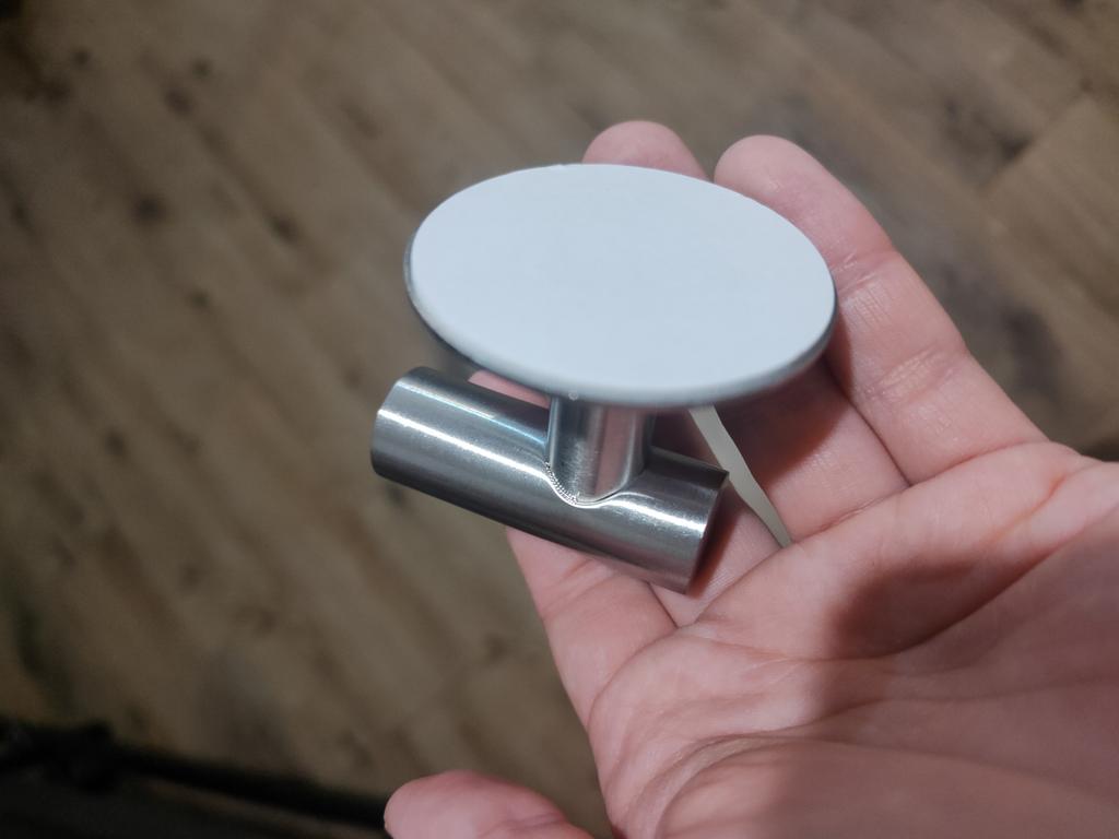Sehr coole Haken. Auf Klebeband montiert, komplett mit einem Ersatzkreis mit klebriger Basis. Während ich mich festhalte, hänge ich Handtücher auf