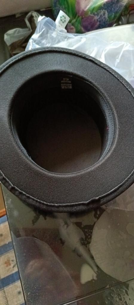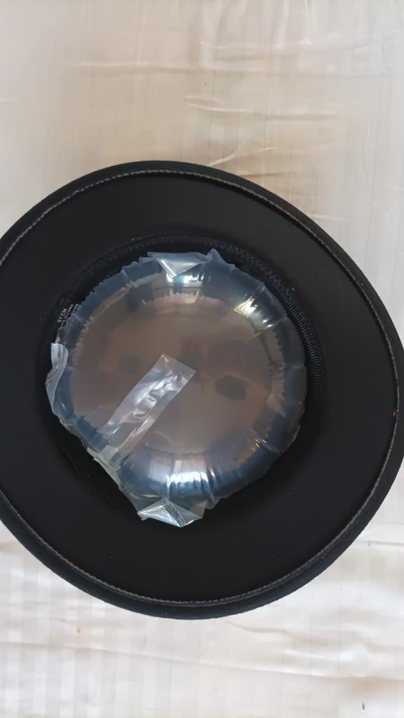 Ich habe es als Geschenk gekauft. Hervorragende Verpackung, um das Produkt nicht zu beschädigen - verpackt in einem Puffbeutel, der die Form des Hutes beibehält. Die Farbe ist schwarz, ohne Beschädigung.
