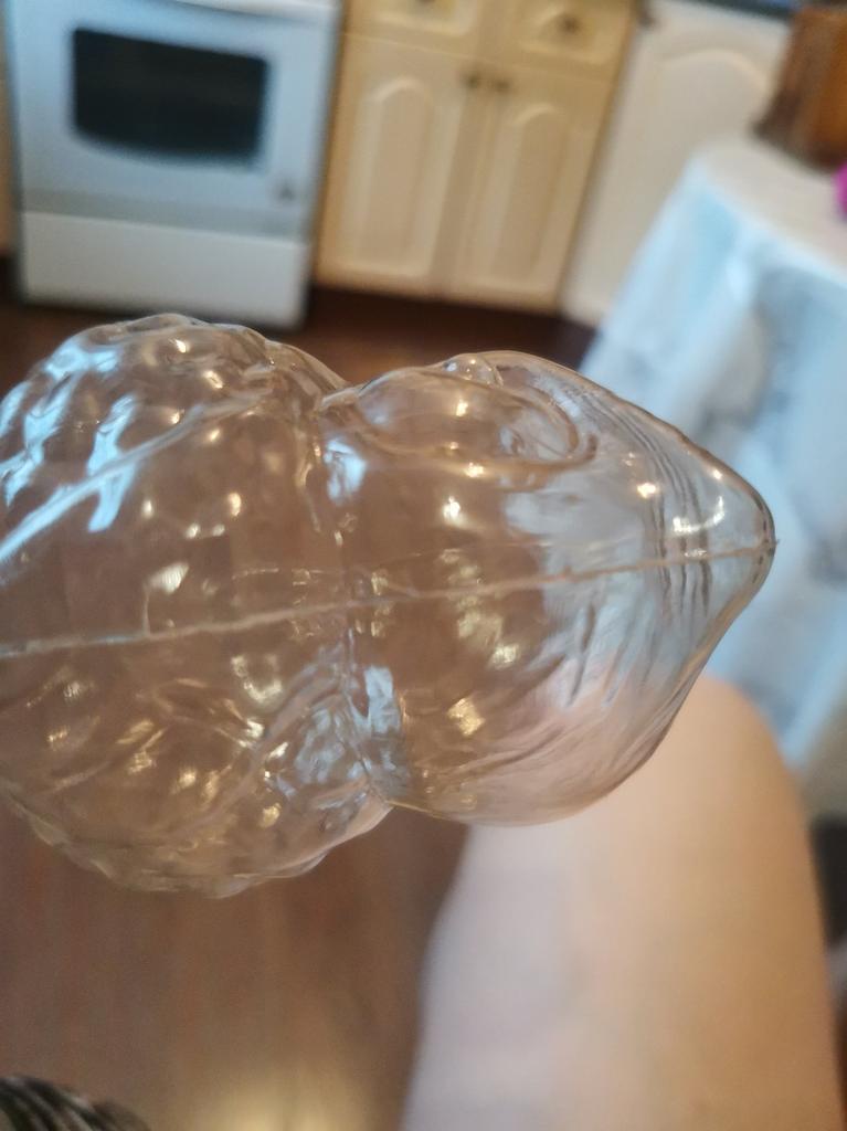 Aus wolkigem gräulichem Kunststoff, schlechte Qualität